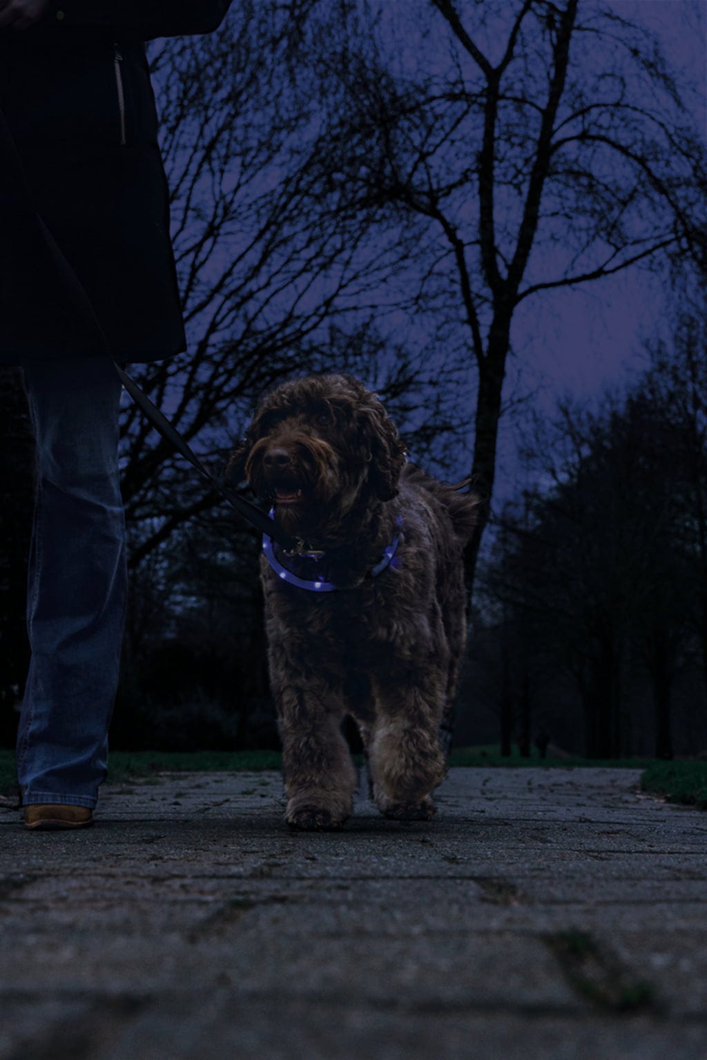 Na výběr máte tři světelné režimy – pomalé blikání, rychlé blikání a stálé svícení – takže vždy snadno přizpůsobíte osvětlení aktuálním podmínkám. Když světlo zeslábne nebo zhasne, jednoduše obojek dobijete přes USB a můžete pokračovat v procházce.