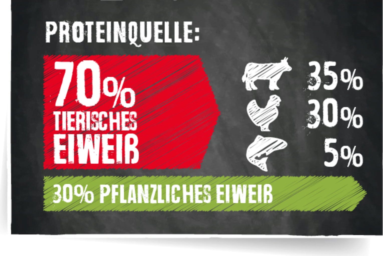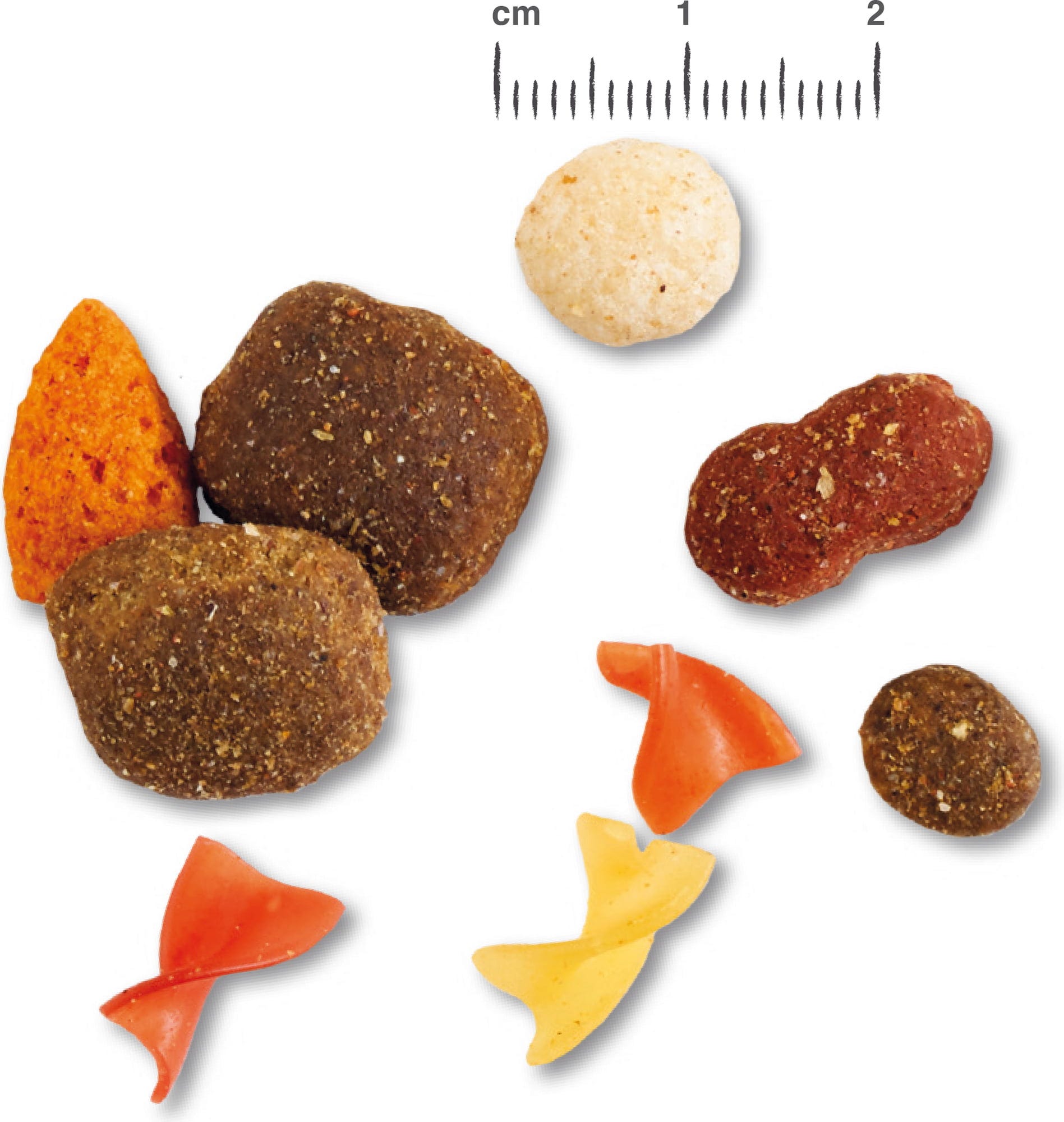 kukuřice, 14 % Rýže, drůbeží protein s nízkým obsahem popelovin, sušený, kukuřičná krmná moučka, 7 % sušené nudle se škvarky, proteiny z extrakce želatiny, pšenice, 4 % extrudovaná zelenina, ječmen, rostlinné oleje, drůbeží tuk, pivovarské kvasnice inaktivované a sušené, odcukerněné sušené řepné řízky, mořská rybí moučka, sušená karobová mouka, hydrolyzovaná drůbeží játra, sušená vejce, chlorid sodný, fosforečnan vápenatý, chlorid draselný, uhličitan vápenatý