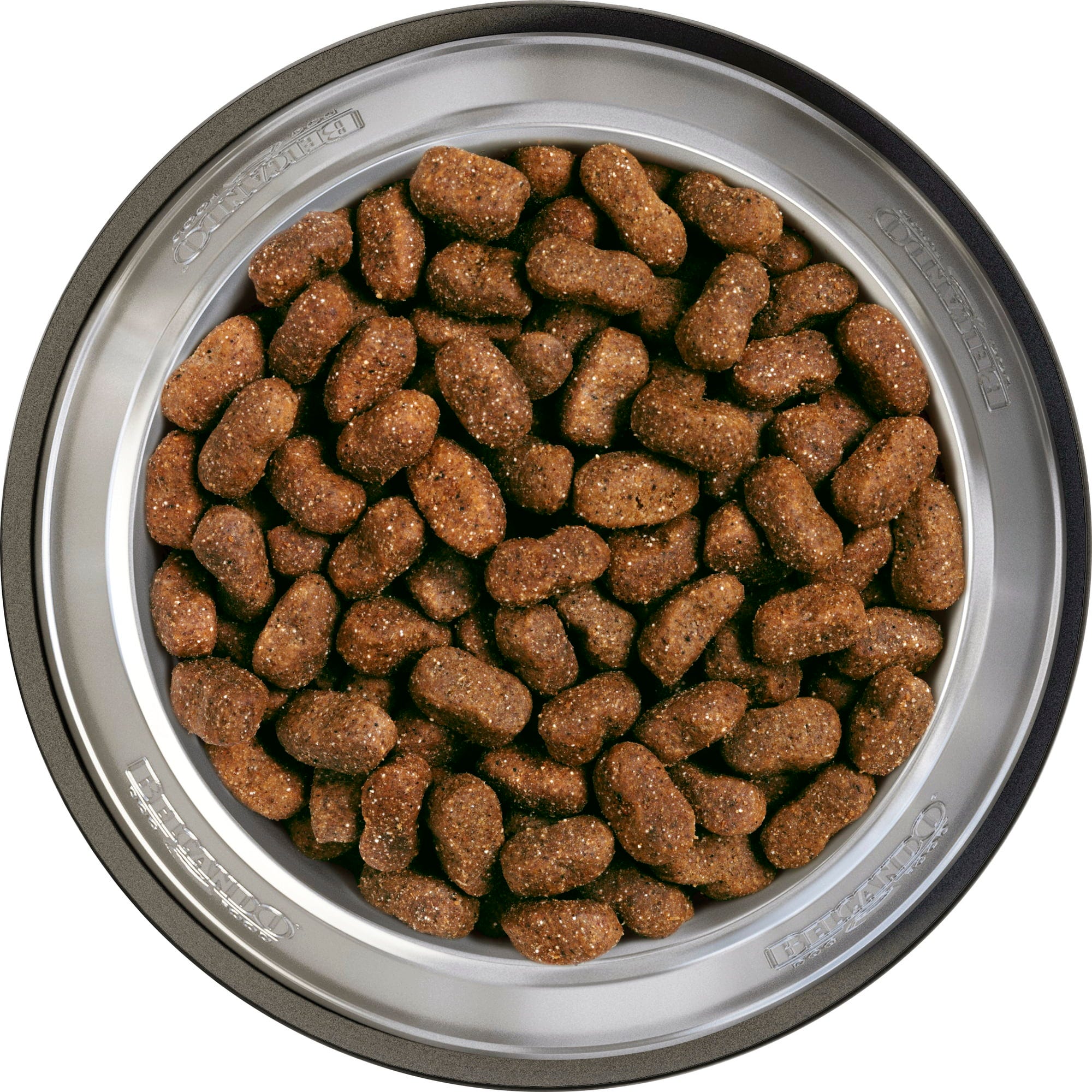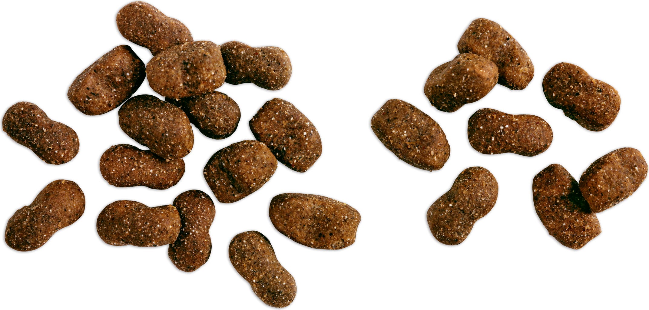 25 % sušený drůbeží protein, 15 % Rýže, kukuřice, ovesná mouka z loupaných semen, drůbeží tuk, odcukerněné sušené řepné řízky, mořská rybí moučka, 2,5 % hydrolyzovaná želatina, 2,5 % sušená vejce, sušená karobová mouka, pivovarské kvasnice inaktivované a sušené, 2 % lososový olej, hydrolyzovaná drůbeží játra, lněná semínka, fosforečnan vápenatý, chlorid sodný, chlorid draselný, kvasnicové výrobky[1], 0,2 % sušené bylinky[2]