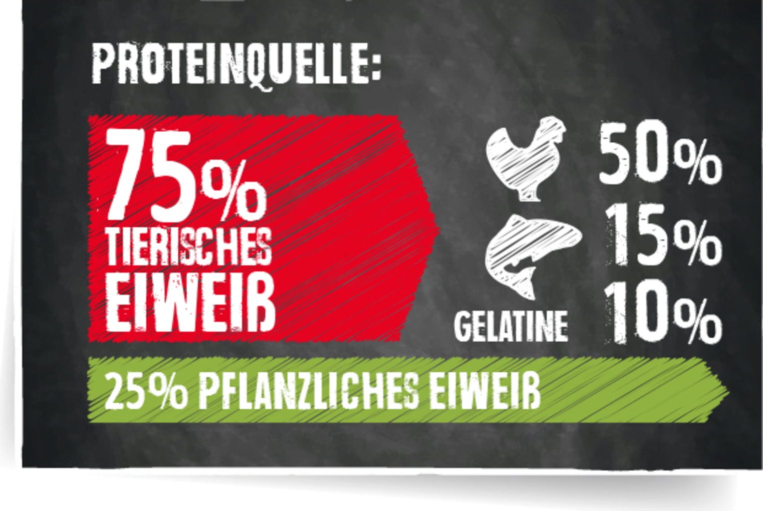 40 % čerstvé drůbeží maso, 19 % amarant, bramborový škrob, hrachová mouka, 4,5 % hydrolyzovaná drůbeží játra, 2,5 % drůbeží protein s nízkým obsahem popelovin, sušený, pozemní mořský zooplankton (2,5 % Krill), 2,5 % hydrolyzovaná želatina, 2,5 % pivovarské kvasnice inaktivované a sušené, výlisky z hroznových jader, sušená karobová mouka, odcukerněné sušené řepné řízky, 2 % mořská rybí moučka, drůbeží tuk, chia semínka, uhličitan vápenatý, fosforečnan vápenatý, chlorid draselný, chlorid sodný, sušené bylinky[1], Yucca schidigera