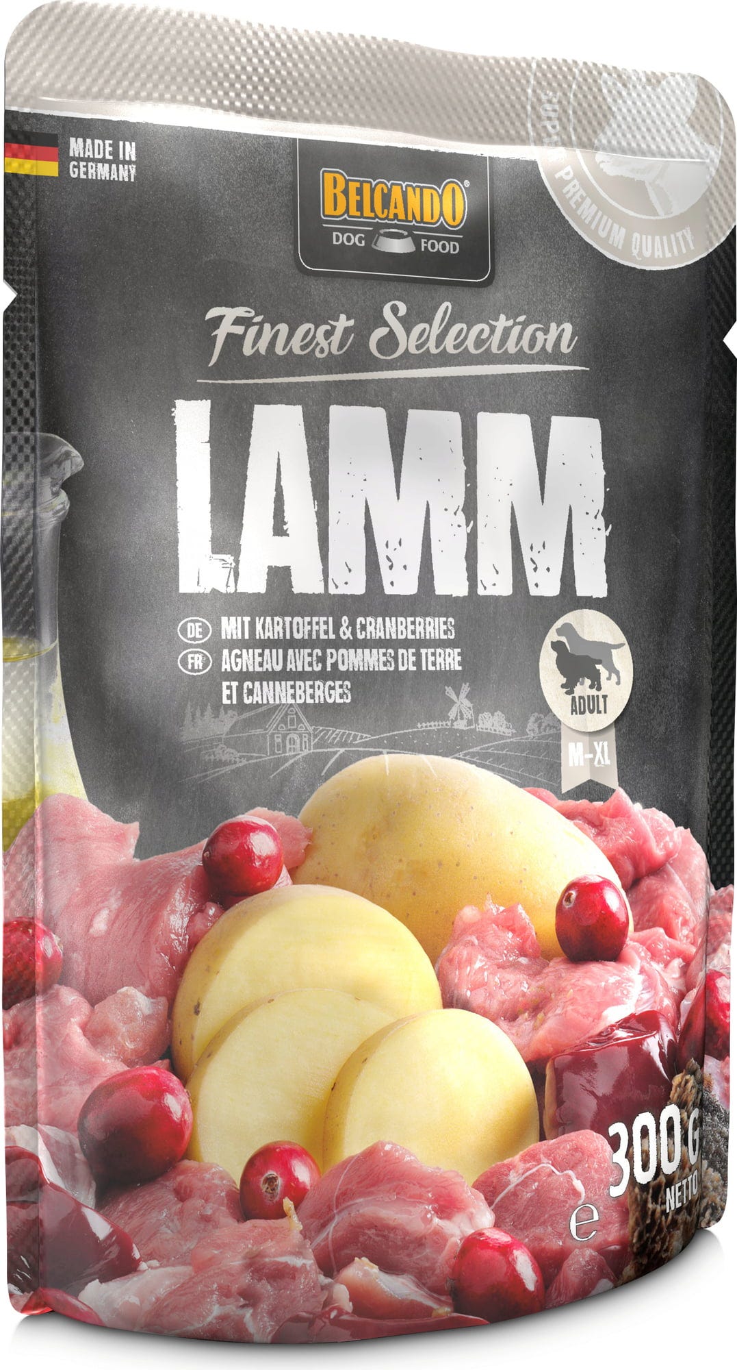 Kulinářské menu pro extra hladové labužníky: Kapsičky Belcando® obsahují to, co psi milují! Šetrně vařené šťavnaté kousky jehněčího masa se snoubí s bramborami a brusinkami. S každým soustem symfonie požitku! S velkým množstvím esenciálních nenasycených mastných kyselin z bodlákového oleje lisovaného za studena.