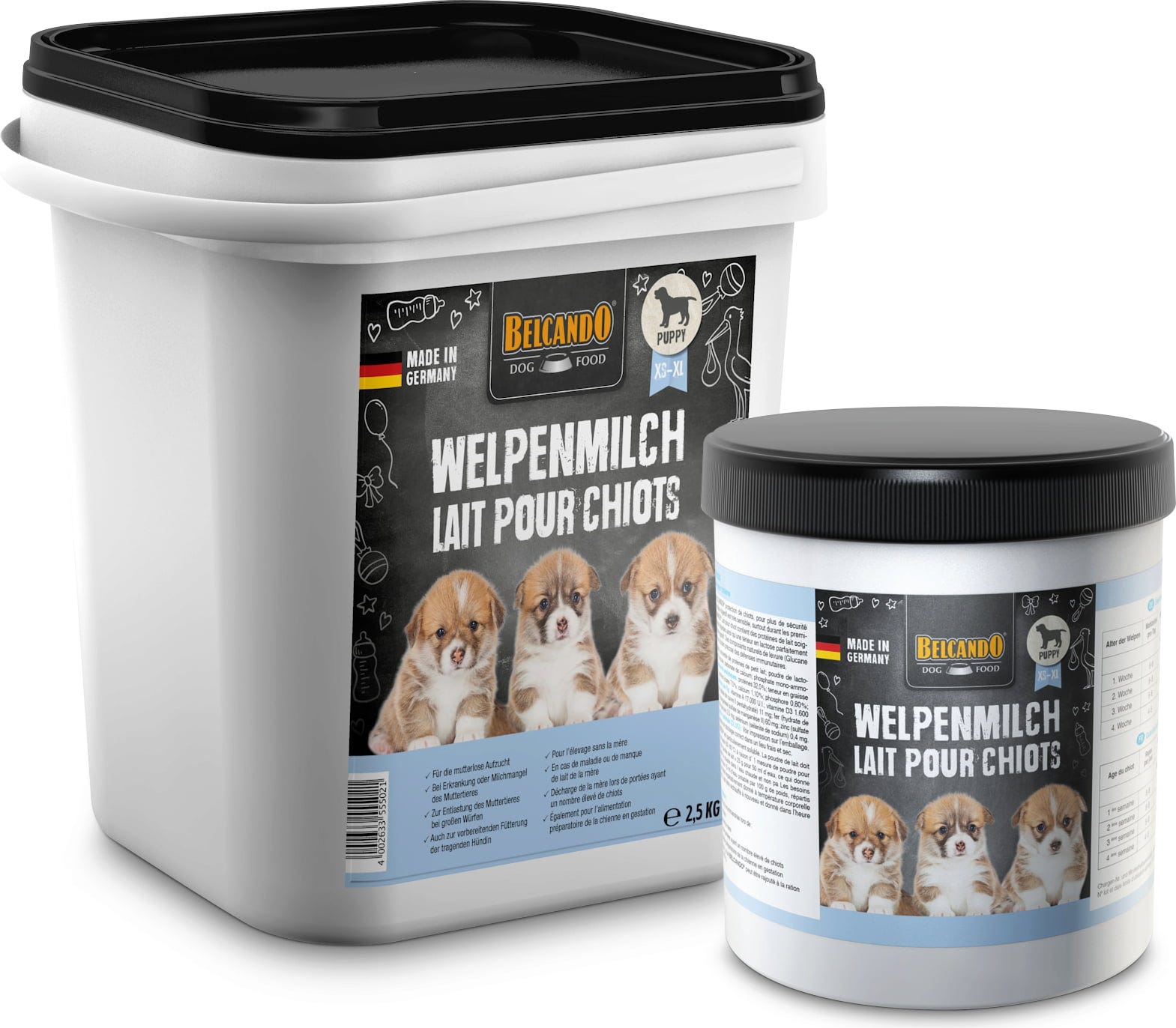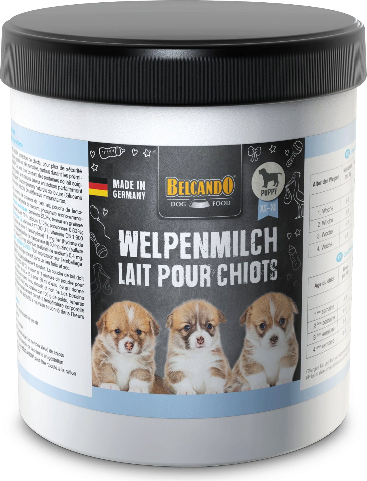 Belcando mléko pro štěňata je dobře rozpustné sušené mléko, které je speciálně přizpůsobeno potřebám štěňat. Tato náhražka mléka je vhodná pro štěňata, která jsou odchovávána bez matky, a také pro štěňata, jejichž matka (například z důvodu onemocnění) nemůže produkovat dostatečné množství mléka. Mléko pro štěňata obsahuje, stejně jako mateřské mléko, vitamíny A, E a D3.
