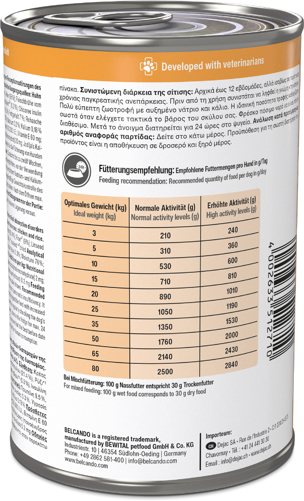 Pokud Váš věrný společník bojuje se zažívacími potížemi, je cílená výživa důležitým stavebním kamenem pro vyšší kvalitu života. S BELCANDO Vetline Gastro nabízíte svému psovi speciálně vyvinutou dietu při akutních zažívacích potížích a gastrointestinálních onemocněních, aniž byste museli dělat kompromisy v chuti. Díky vysoce kvalitním surovinám, jako je čerstvé kuřecí maso, lehce stravitelná rýže a lněné semínko, je krmivo vynikajícím způsobem přijímáno. Podpoříte tak svého miláčka, aby si i přes zdravotní potíže užíval každý den vitálně a spokojeně.