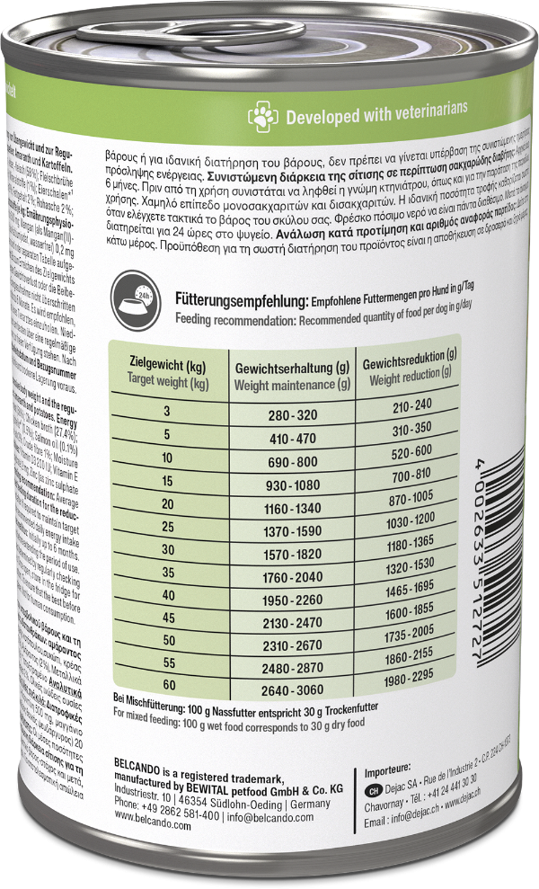 Pokud Váš věrný společník bojuje s nadváhou a/nebo diabetem mellitem, je cílená výživa důležitým stavebním kamenem pro vyšší kvalitu života. S BELCANDO Vetline Weight Control nabízíte svému psovi speciálně vyvinuté mokré krmivo vhodné pro redukční dietu, aniž byste museli dělat kompromisy v chuti. Díky vysoce kvalitním surovinám, jako je čerstvé kuřecí maso, amarant a sytící jablečná vláknina, je krmivo skvěle přijímáno i vybíravými zvířaty. Podpoříte tak svého miláčka, aby si i přes zdravotní výzvy mohl každý den užívat vitálně a spokojeně.