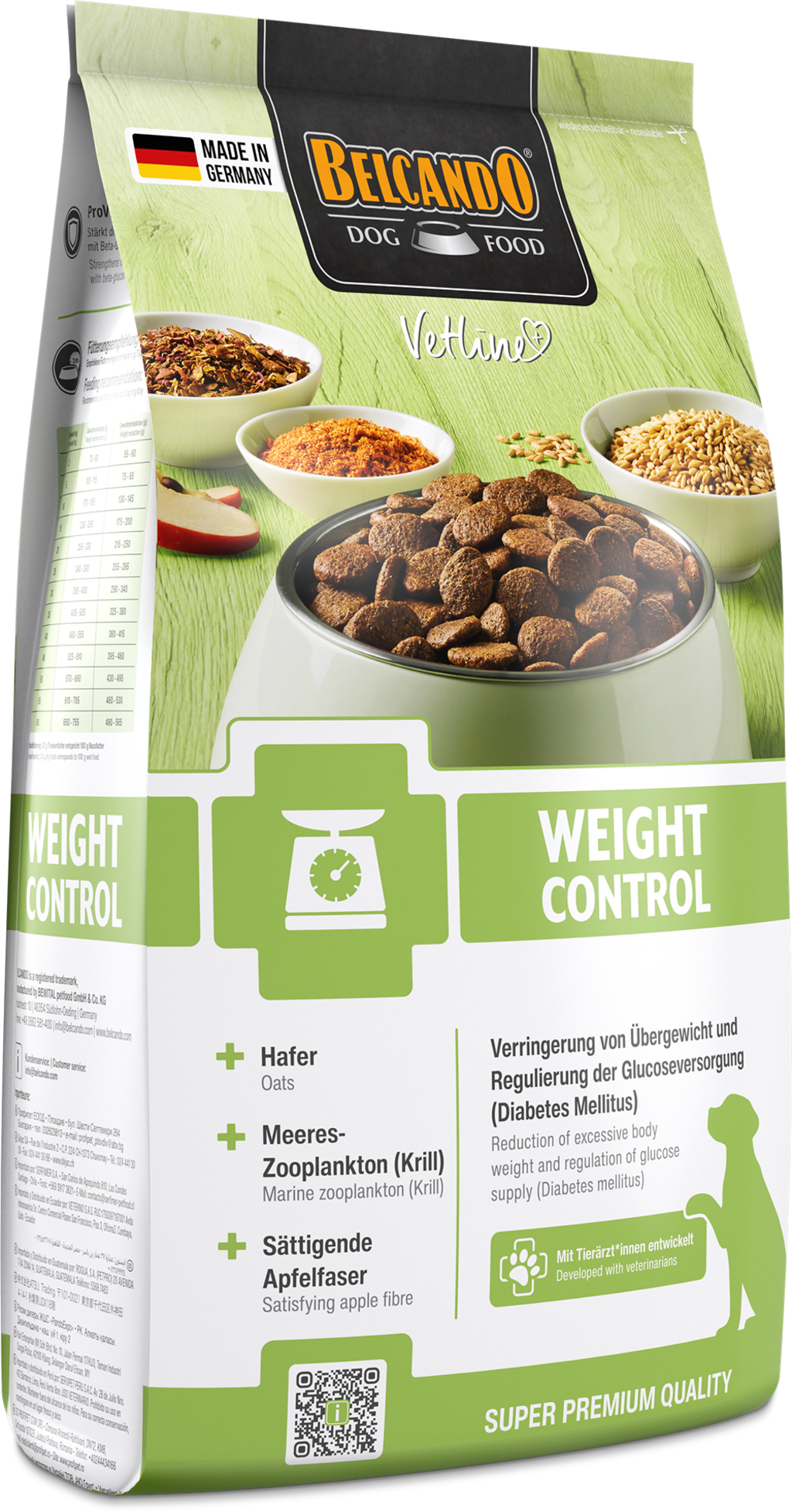 Pokud Váš věrný společník bojuje s nadváhou a/nebo onemocněním Diabetes Mellitus, je cílená výživa důležitým stavebním kamenem pro vyšší kvalitu života. S BELCANDO Vetline Weight Control nabízíte svému psovi speciálně vyvinuté krmivo vhodné pro redukční dietu, aniž byste museli dělat kompromisy v chuti. Díky vysoce kvalitním surovinám, jako je sytý oves, jablečná vláknina bohatá na balastní látky a krill, je krmivo skvěle přijímáno i vybíravými zvířaty. Podpoříte tak svého miláčka, aby si i přes zdravotní potíže mohl každý den užívat vitálně a spokojeně.