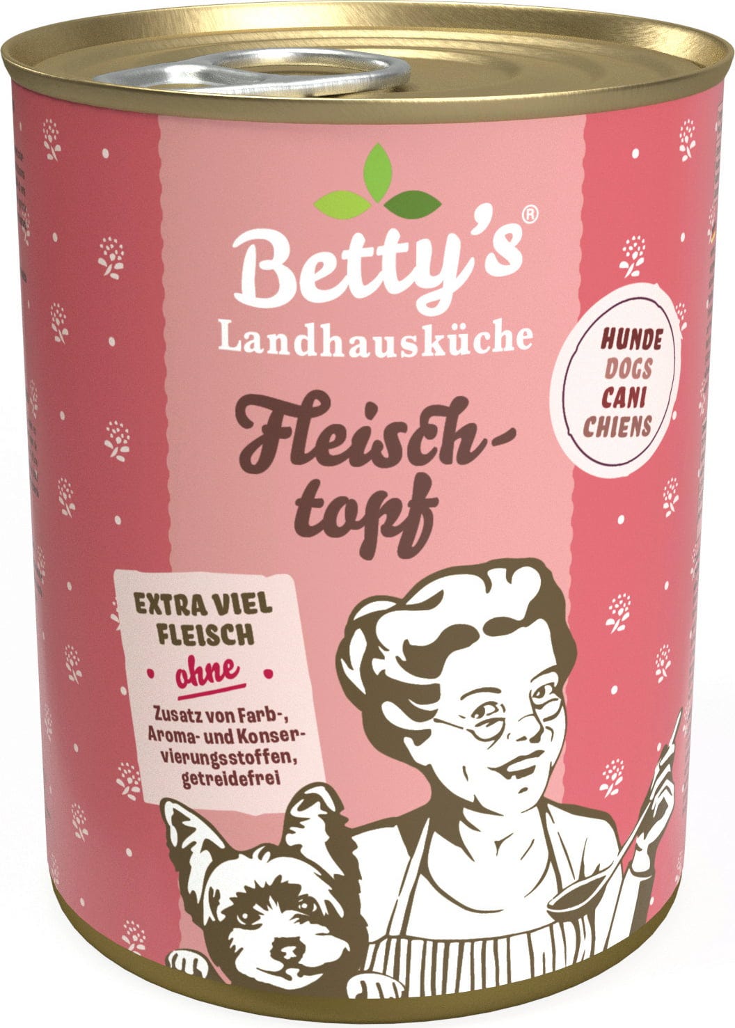 Betty's Landhausküche Masový hrnec poskytuje obzvláště vysoký podíl živočišných bílkovin s vynikající chutí čistého hovězího masa, které pochází z německých zemědělských podniků. Kromě 73% podílu masa nesmí chybět ani důležité minerální látky. Sušené vaječné skořápky navíc fungují jako přírodní zdroj vápníku. Který pes by dokázal odolat takové pochoutce?