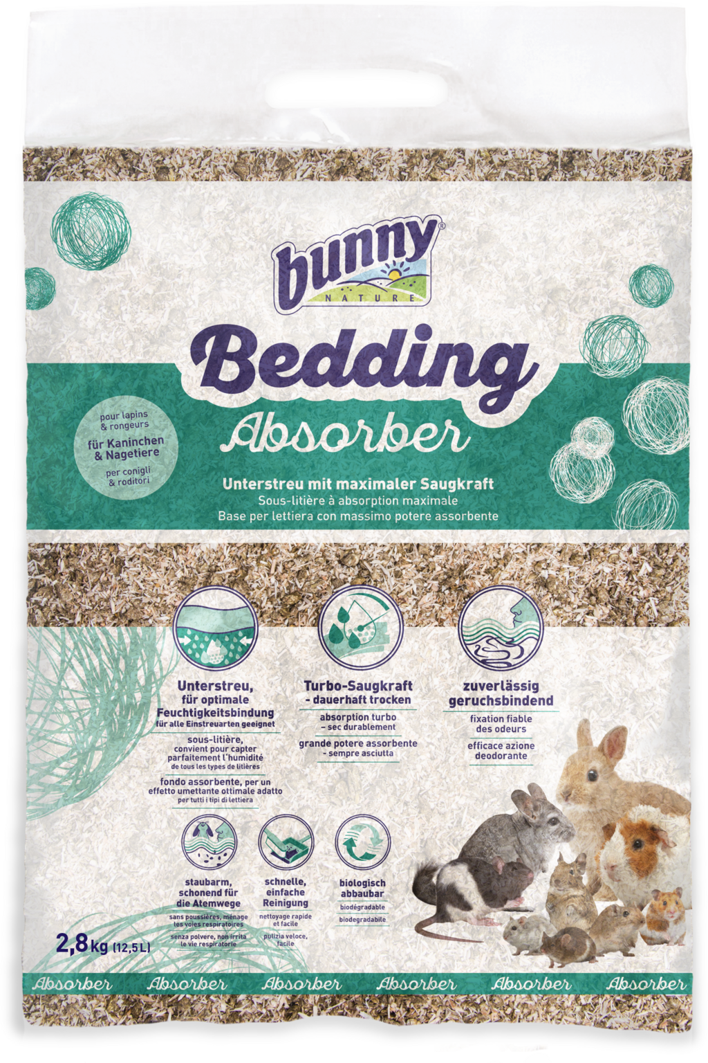 • Naneste bunnyBedding Absorber na dno klece alespoň ve vrstvě 2 cm a zakryjte podestýlkou dle Vaší volby.