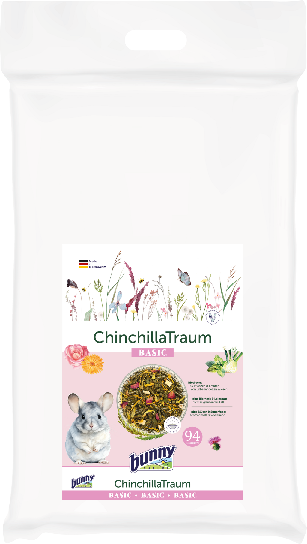 Když se sny činčil stanou skutečností... tohle lahodné krmivo určitě nebude daleko! Díky 63 různým rostlinám z neošetřovaných luk, lněnému semínku a pivovarským kvasnicím přináší chutnou rozmanitost do misky a umožňuje kvalitní a přirozenou výživu Vašich domácích mazlíčků.