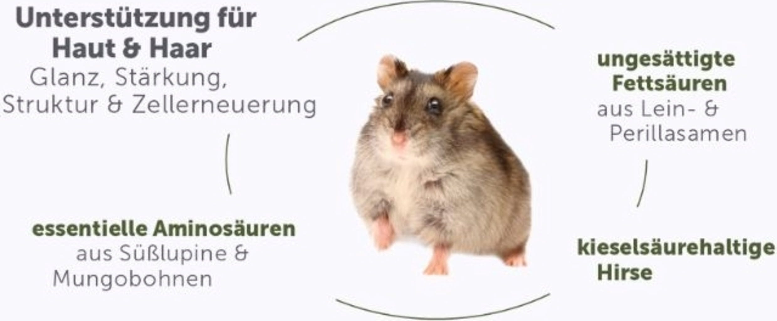 Toto kompletní krmivo pro křečky umožňuje přirozenou a vyváženou výživu Vašich domácích mazlíčků. Neobsahuje pelety a díky pestré směsi rostlinných a živočišných složek přináší chutnou rozmanitost do misky i velmi vysokou přijatelnost. Navíc může podpořit normální funkci srsti a kůže.