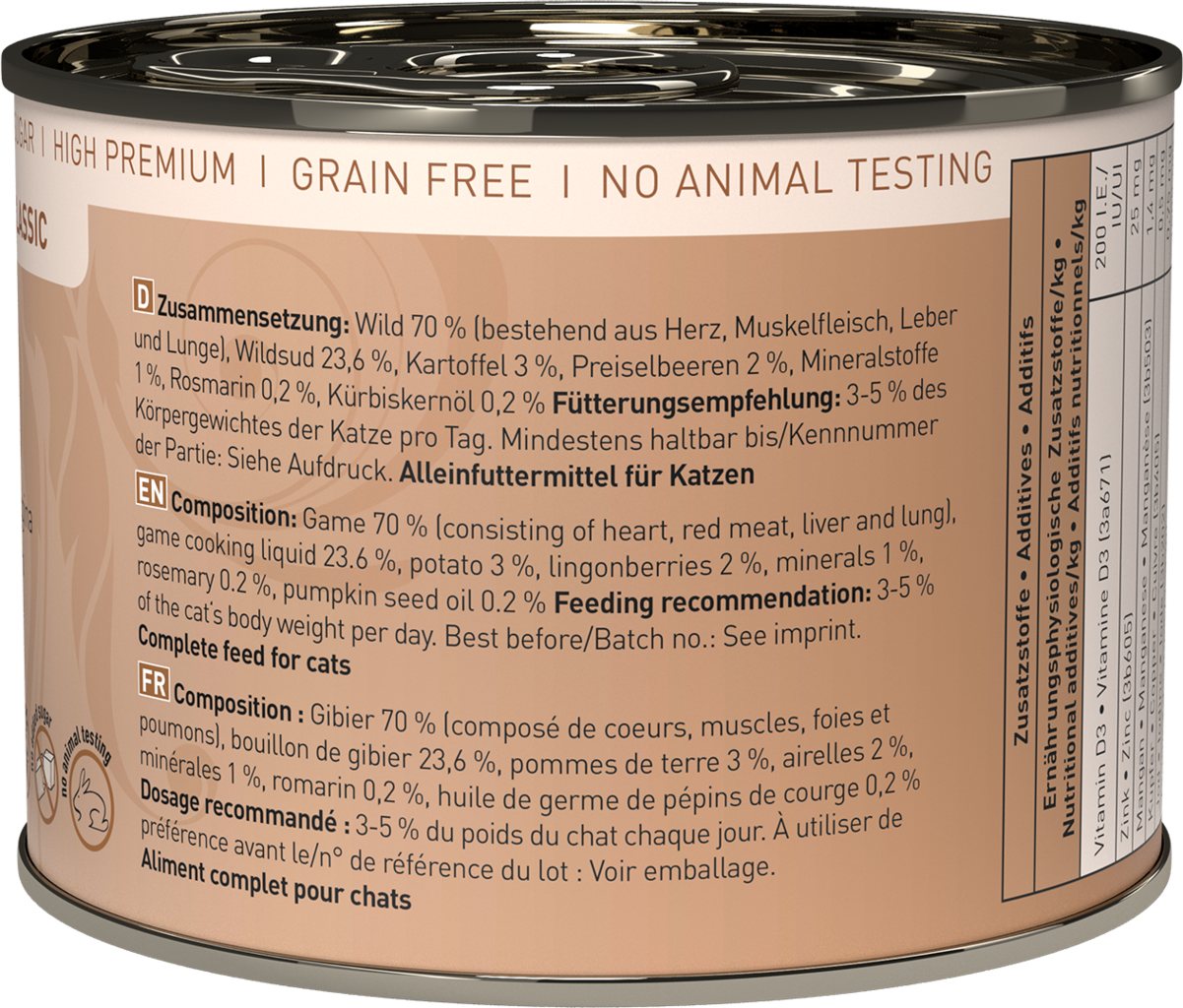 S tímto prémiovým mokrým krmivem můžete své kočce dopřát něco zcela výjimečného a hýčkat ji vybranými přírodními ingrediencemi ve vynikající kvalitě a s vytříbenou chutí. Receptura sestavená podle konceptu kořisti respektuje přirozenost Vaší kočky a navrací jí tak kousek původní kvality života.