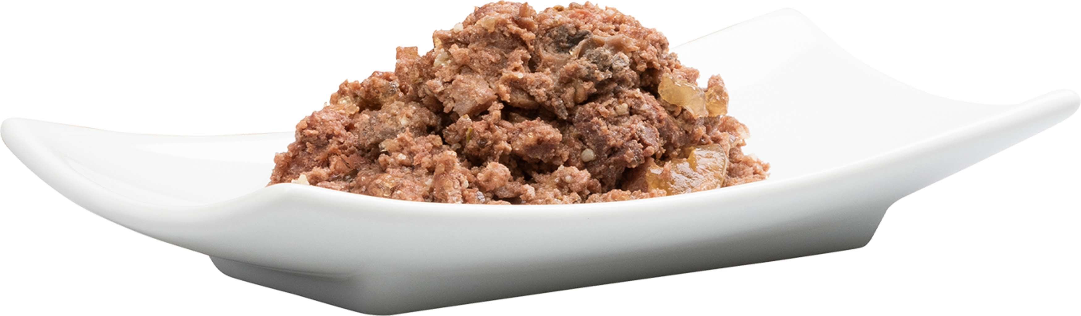 70 % zvěřina (srdce, svalovina, játra, plíce), 23,6 % zvěřinový vývar, 3 % brambory, 2 % brusinky, 1 % minerály, 0,2 % rozmarýn, 0,2 % olej z dýňových semínek