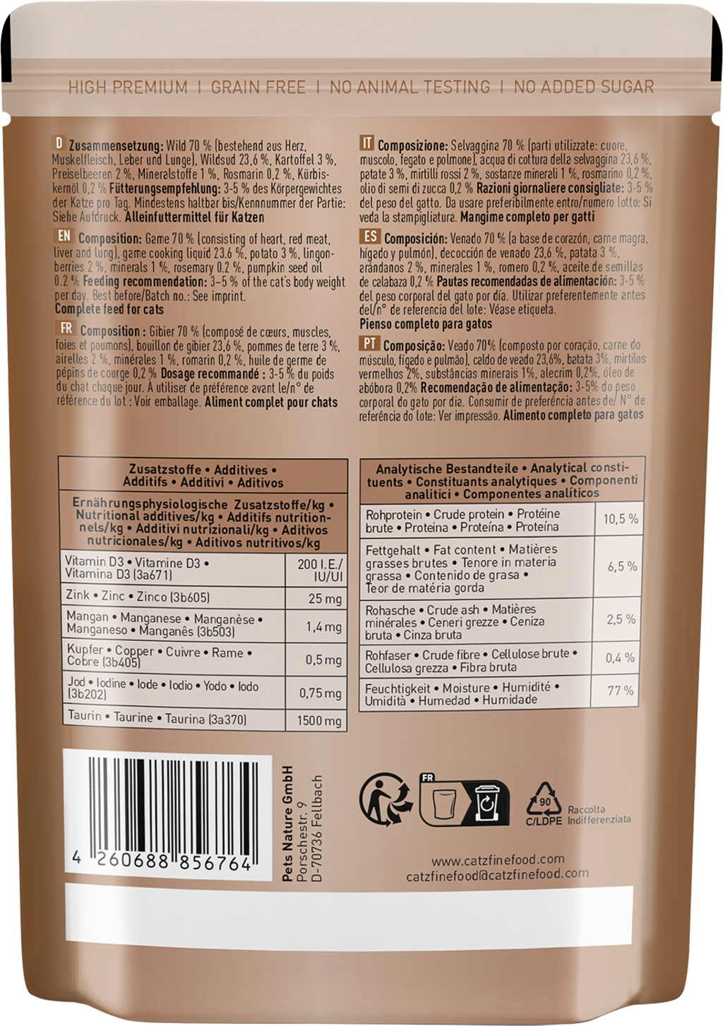 S tímto prémiovým mokrým krmivem můžete své kočce dopřát něco zcela výjimečného a hýčkat ji vybranými přírodními ingrediencemi ve vynikající kvalitě a s vytříbenou chutí. Toto krmivo, sestavené podle konceptu kořisti, respektuje přirozenost Vaší kočky a vrací jí tak kousek původní kvality života.