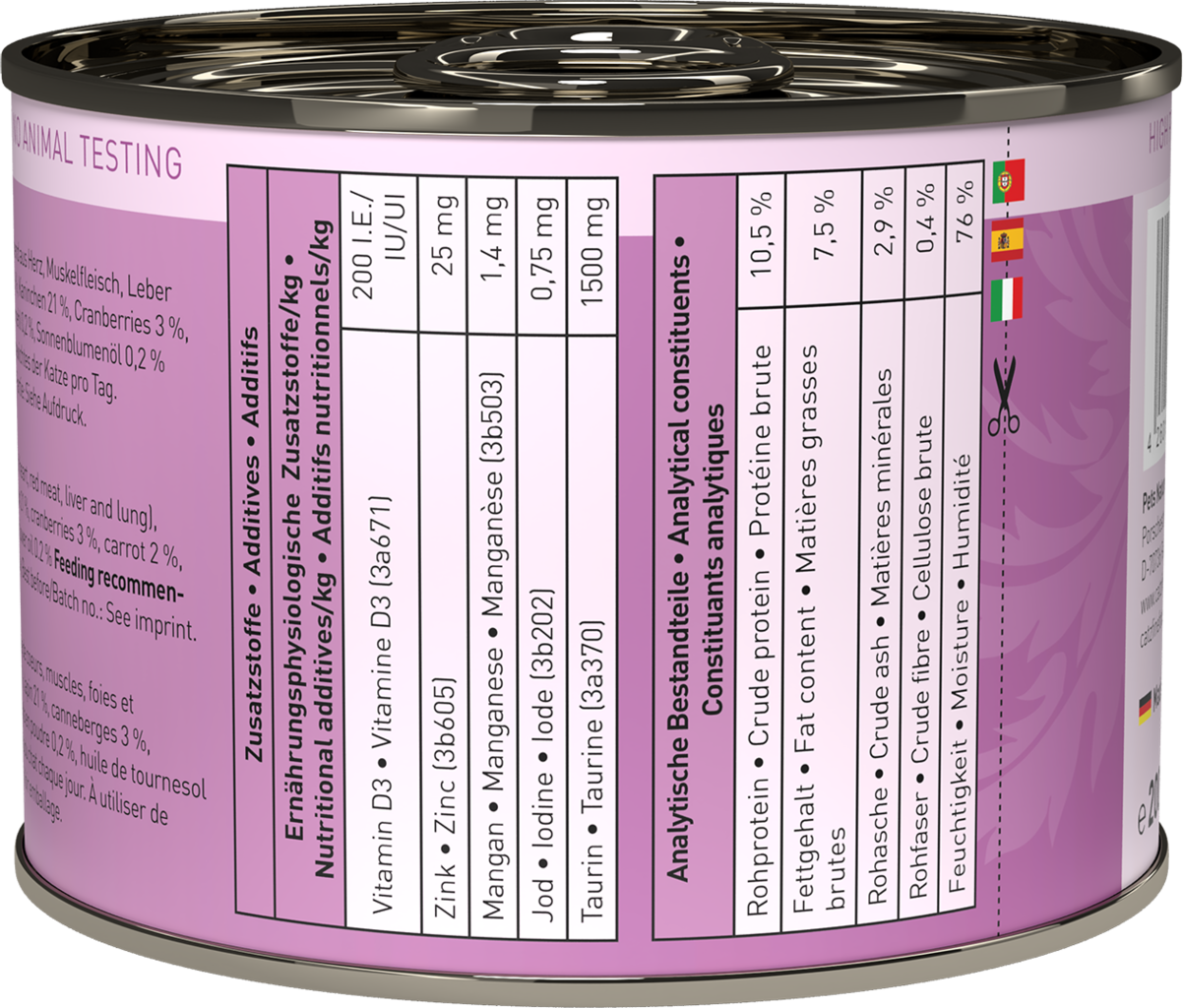 S tímto prémiovým mokrým krmivem můžete své kočce dopřát něco zcela výjimečného a hýčkat ji vybranými přírodními ingrediencemi v špičkové kvalitě a s vynikající chutí. Toto krmivo, sestavené podle konceptu kořisti, respektuje přirozenost Vaší kočky a navrací jí tak kousek původní kvality života.