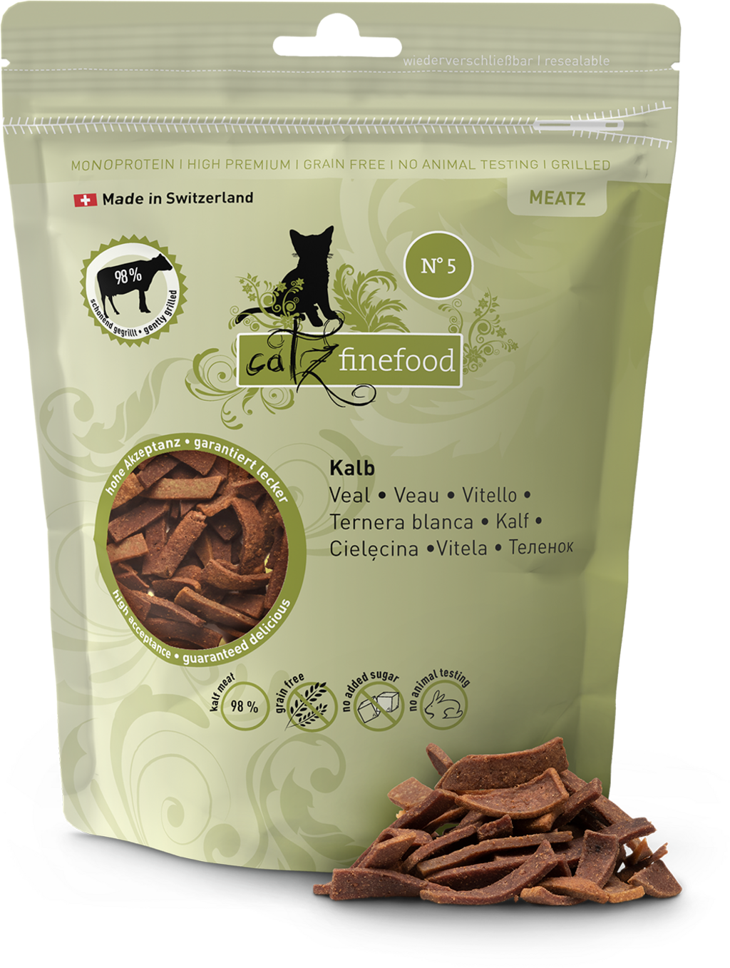 Míca, maso, Meatz? To je jedno, hlavní je, že chutnají tak skvěle jako tyto grilované a následně šetrně na vzduchu sušené masové proužky, které jsou neodolatelným pamlskem pro Vaši kočku a hýčkají ji obzvláště vysokým podílem masa a další hodnotnou ingrediencí podle konkrétního druhu. Zvenku nádherně křupavé, uvnitř jemné a s intenzivním masovým aroma – s touto lákavou odměnou se i cesta do přepravky stane hračkou.