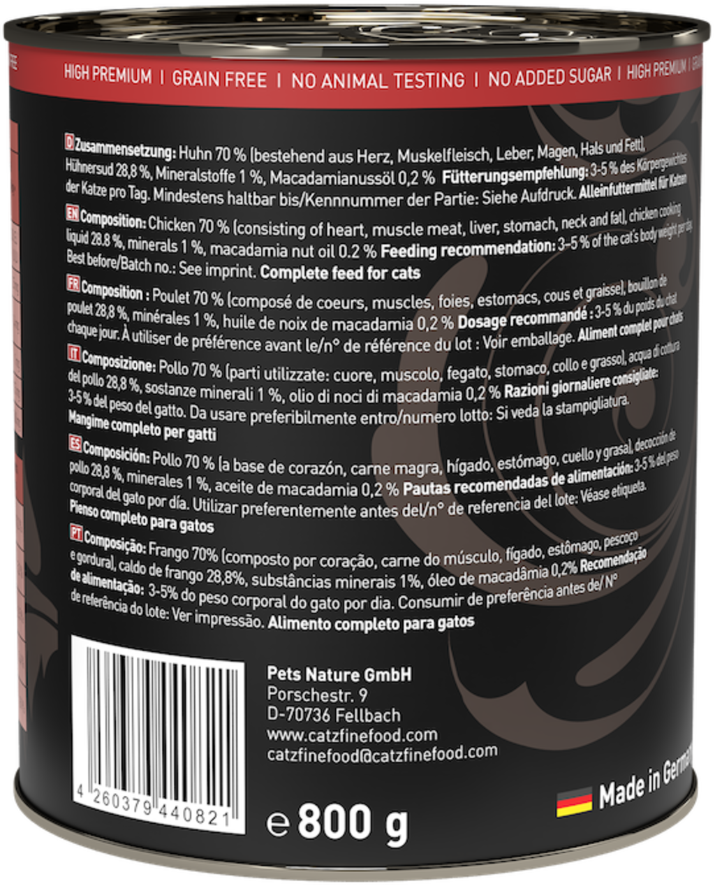 Toto chutné prémiové mokré krmivo zaručeně rozvrní Vaši kočku! Vybrané ingredience, receptura odpovídající přirozeným potřebám založená na konceptu kořisti a zcela bez zbytečností – to je čistý požitek pro Vaši kočku a vynikající základ pro vitální kočičí život.