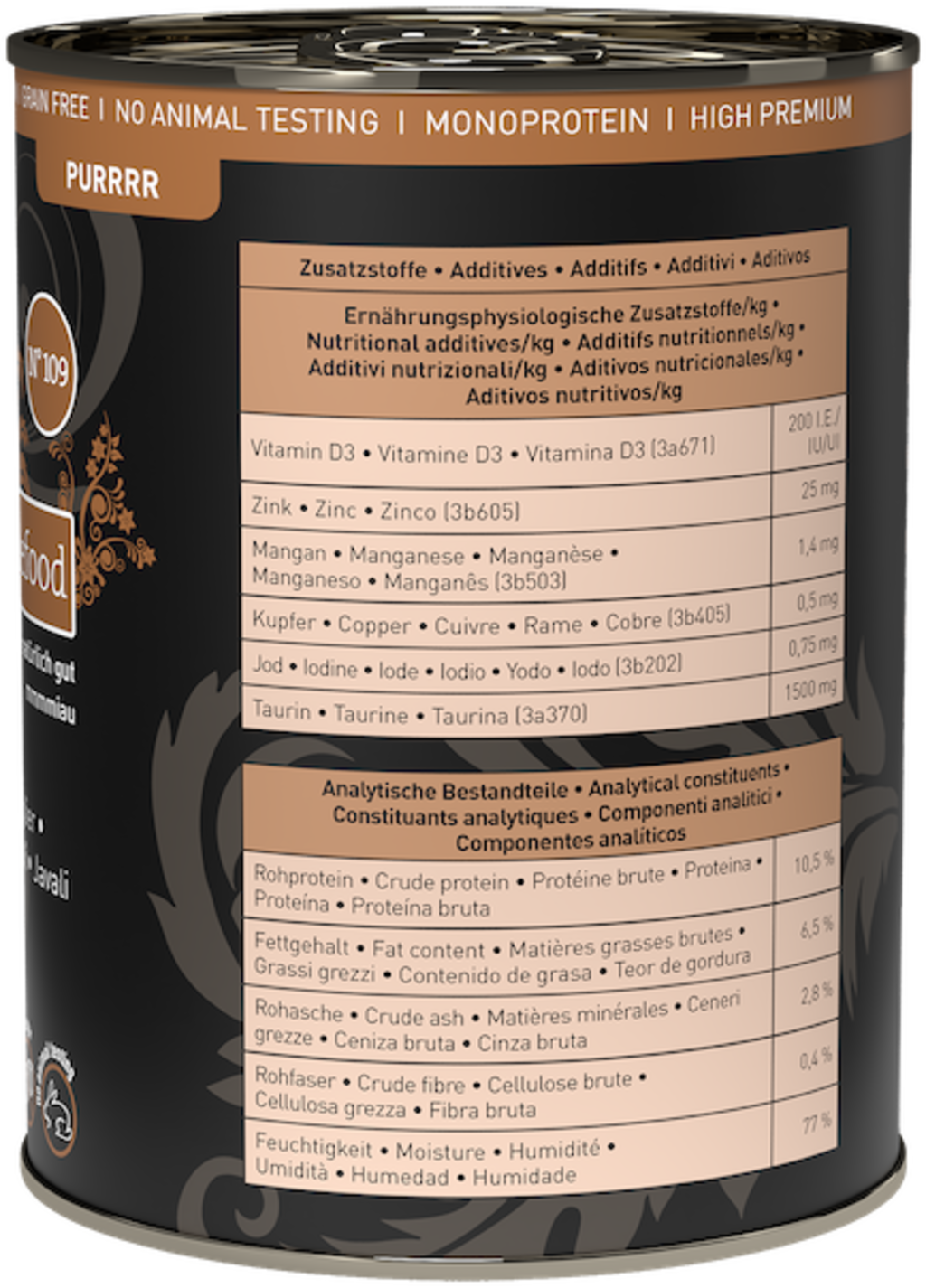 Toto chutné prémiové mokré krmivo zaručeně rozvrní Vaši kočku! Vybrané ingredience, receptura odpovídající přirozeným potřebám založená na konceptu kořisti a zcela bez zbytečných přídatných látek - to je čistý požitek pro Vaši kočku a vynikající základ pro vitální kočičí život.