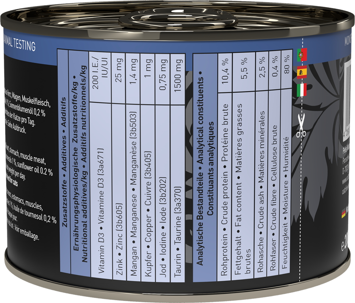 Toto chutné prémiové mokré krmivo zaručeně rozvrní Vaši kočku! Vybrané ingredience, receptura odpovídající přirozeným potřebám založená na konceptu kořisti a zcela bez zbytečností – to je čistý požitek pro Vaši kočku a vynikající základ pro vitální kočičí život.