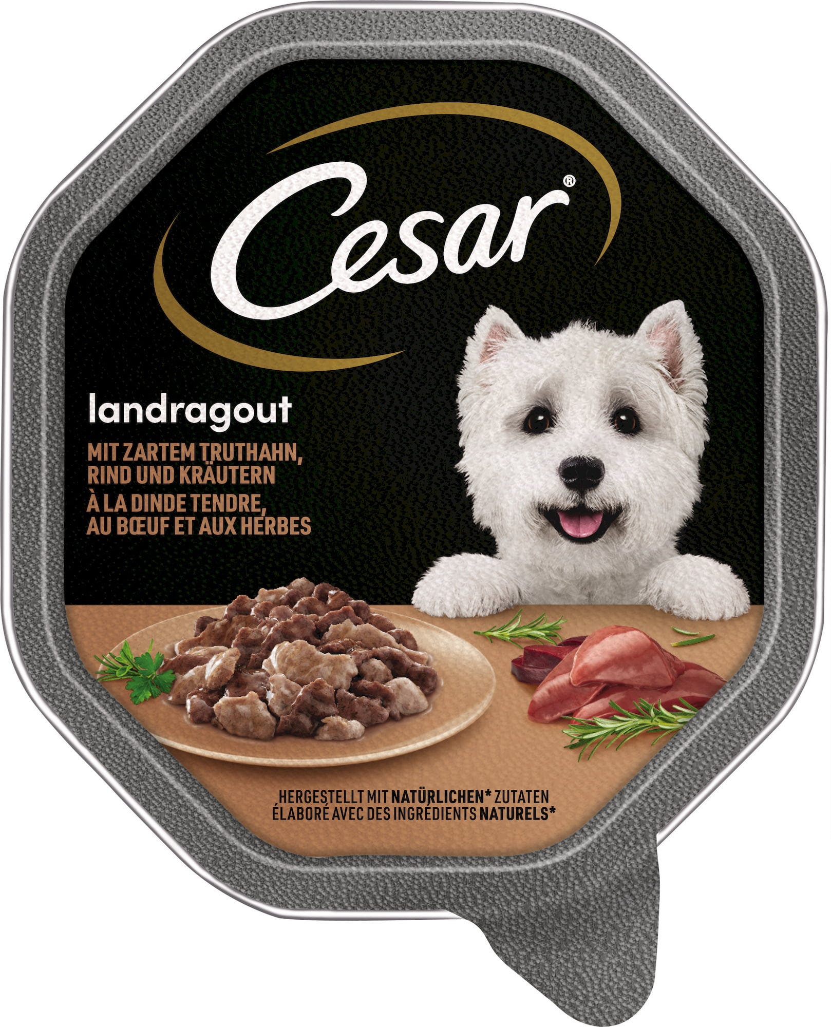 Plnohodnotné mokré krmivo pro dospělé psy. Receptura obsahuje pečlivě vybrané ingredience a je o něco vydatnější než jiné produkty značky Cesar - typická „domácí kuchyně.“ Vláčnost a vysoký obsah bílkovin dělá z každodenní porce vyvážené krmivo. Šťavnaté ragú potěší výraznou chutí a jemnou konzistencí.