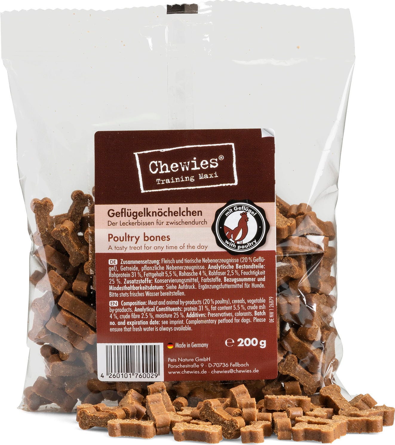 S Maxi kostičkami od Chewies zvládne Váš pes každou tréninkovou lekci během okamžiku! Tyto skvělé pamlsky ve tvaru kosti mají ideální velikost a díky chutnému masitému složení podpoří každý Váš záměr!