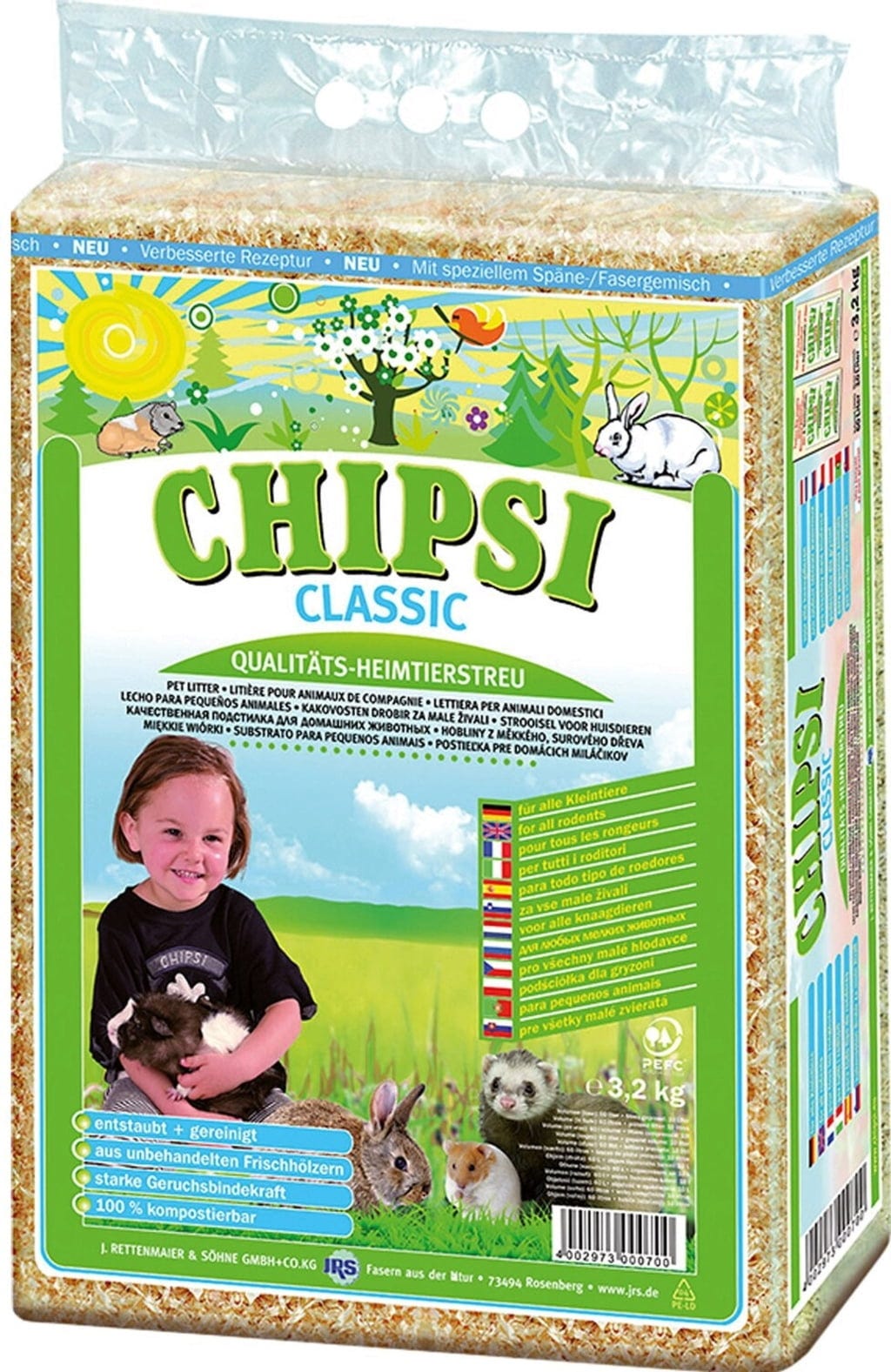 Jak již název napovídá: CHIPSI CLASSIC je klasická podestýlka pro všechny typy klecí pro hlodavce. Skládá se z hoblin z měkkého dřeva šetrných k tlapkám, vyrobených ze smrku a jedle; je tedy 100% rostlinného původu a zaručeně bez chemie. Dalším plusem je přirozená vůně, kterou tyto hobliny šíří – výhoda, pokud klec stojí v obytném prostoru.