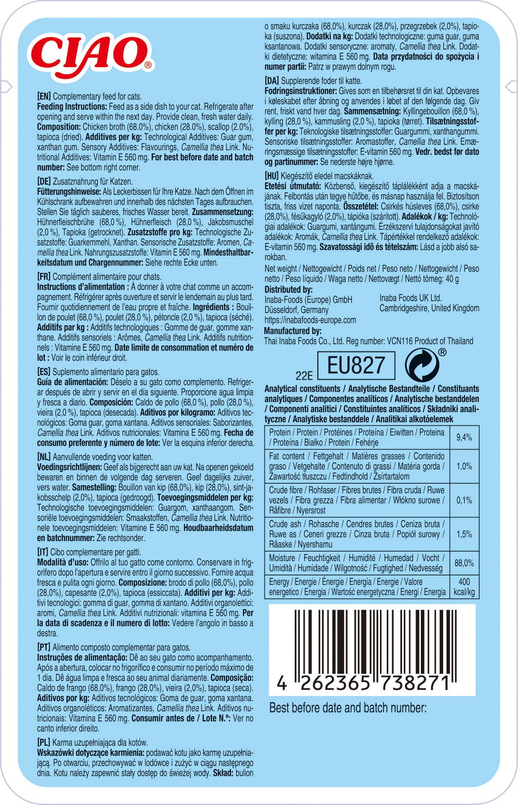 Churu CIAO - vývar, Kuřecí s hřebenatkou (40 g)