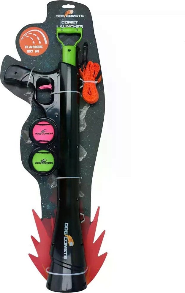 Nemá Váš pes aportování nikdy dost? Pak je Dog Comets Comet Launcher přesně to pravé pro Vás! Tento fantastický katapult na míčky posune aportování na zcela novou úroveň, protože pouhým stisknutím tlačítka můžete vystřelit míček až do vzdálenosti 20 m.