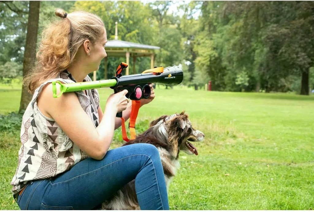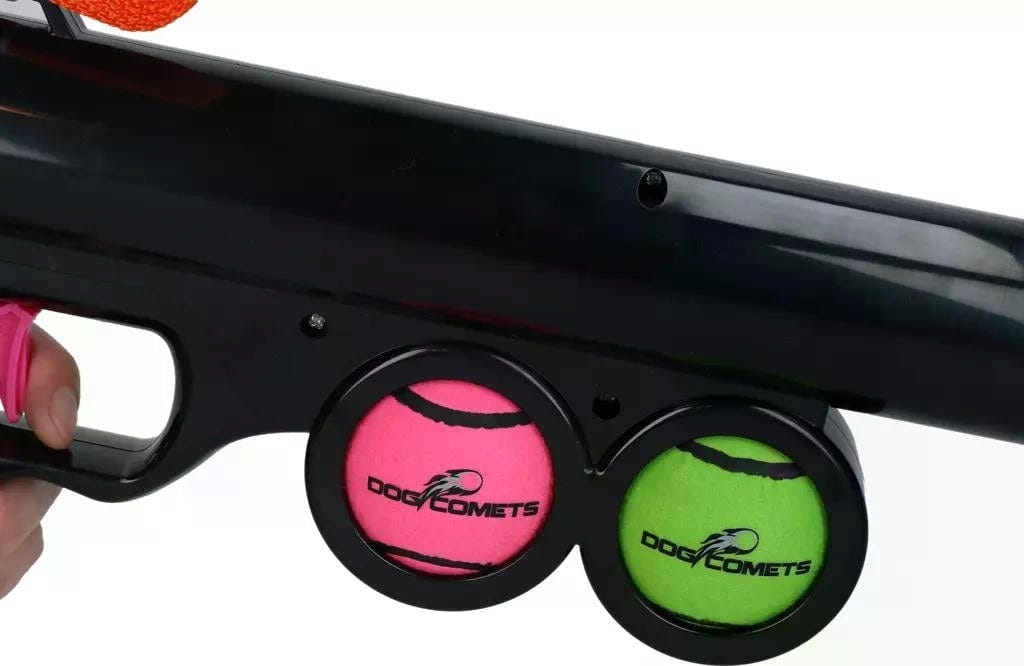 Launcher je vyroben z extra silného a robustního plastu, takže odolá i dlouhým a náročným hrám. A to nejlepší: Získáte nejen samotné dělo, ale také 2 odpovídající tenisové míčky Dog Comets (velikost M) a praktický popruh na přenášení. Díky 2 držákům na míčky po stranách máte vždy po ruce náhradní, pokud se první míček v zápalu hry ztratí.