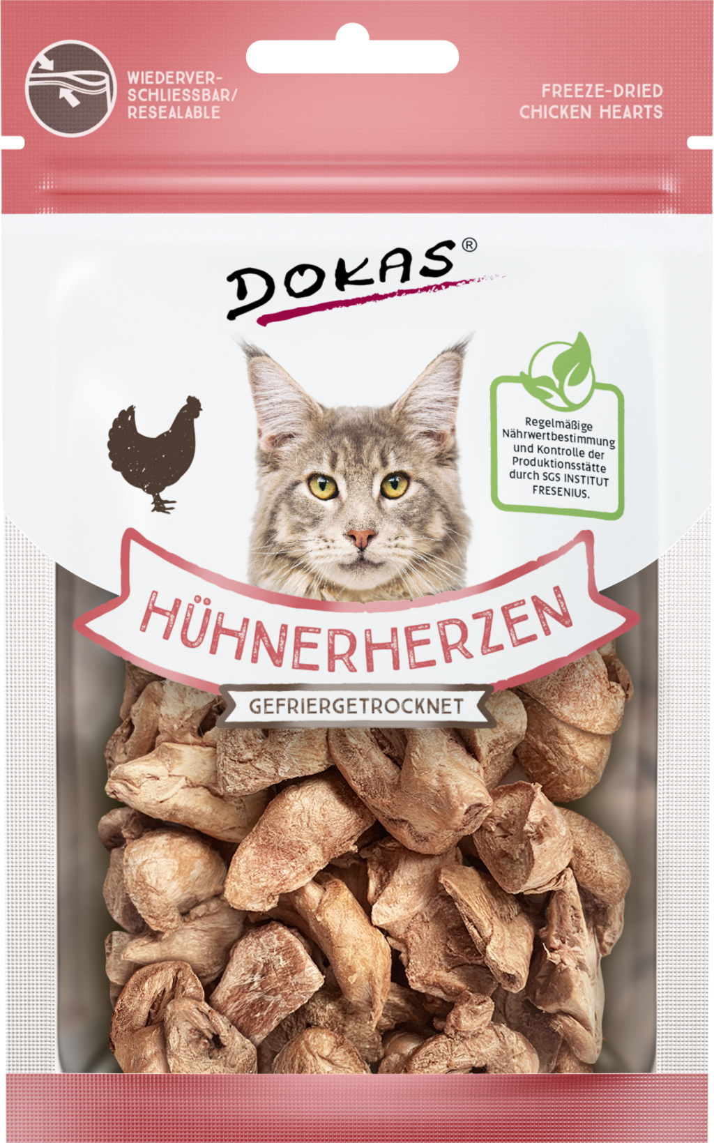 Dokas Dokas mrazem sušená kuřecí srdce pro kočky, 15 g 35,73 Kč (2 382,00 Kč / kg)