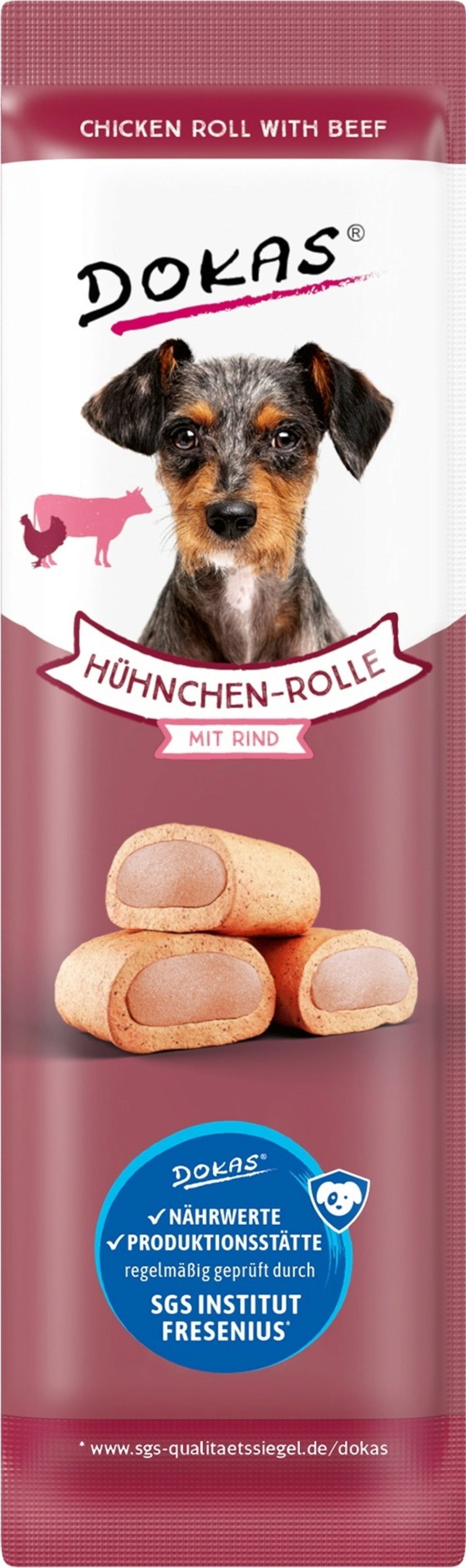 Dokas Kuřecí rolka s hovězím pro psy, 10 g