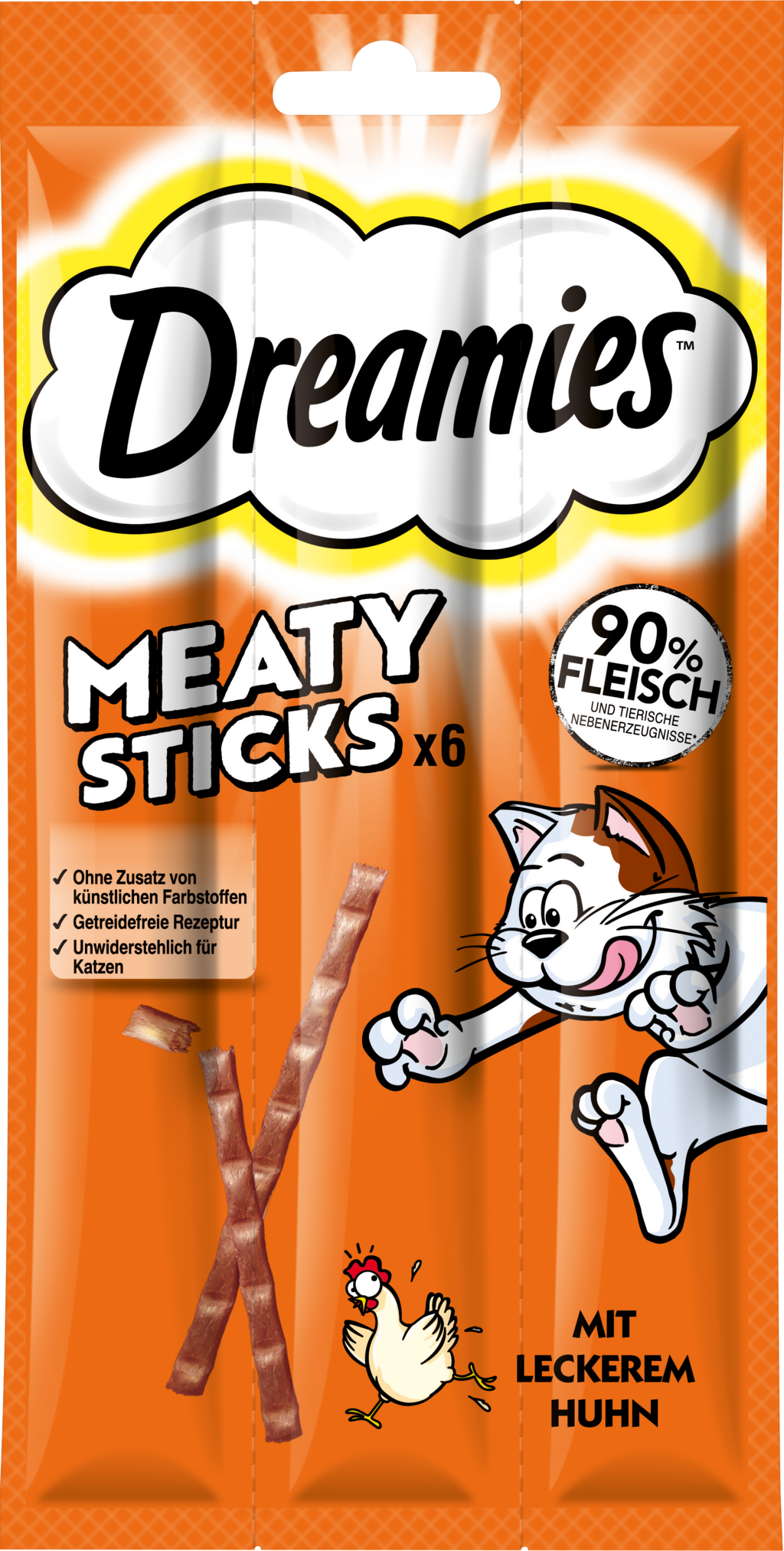 Odměňte Vašeho mazlíčka tyčinkami Meaty Sticks od Dreamies.