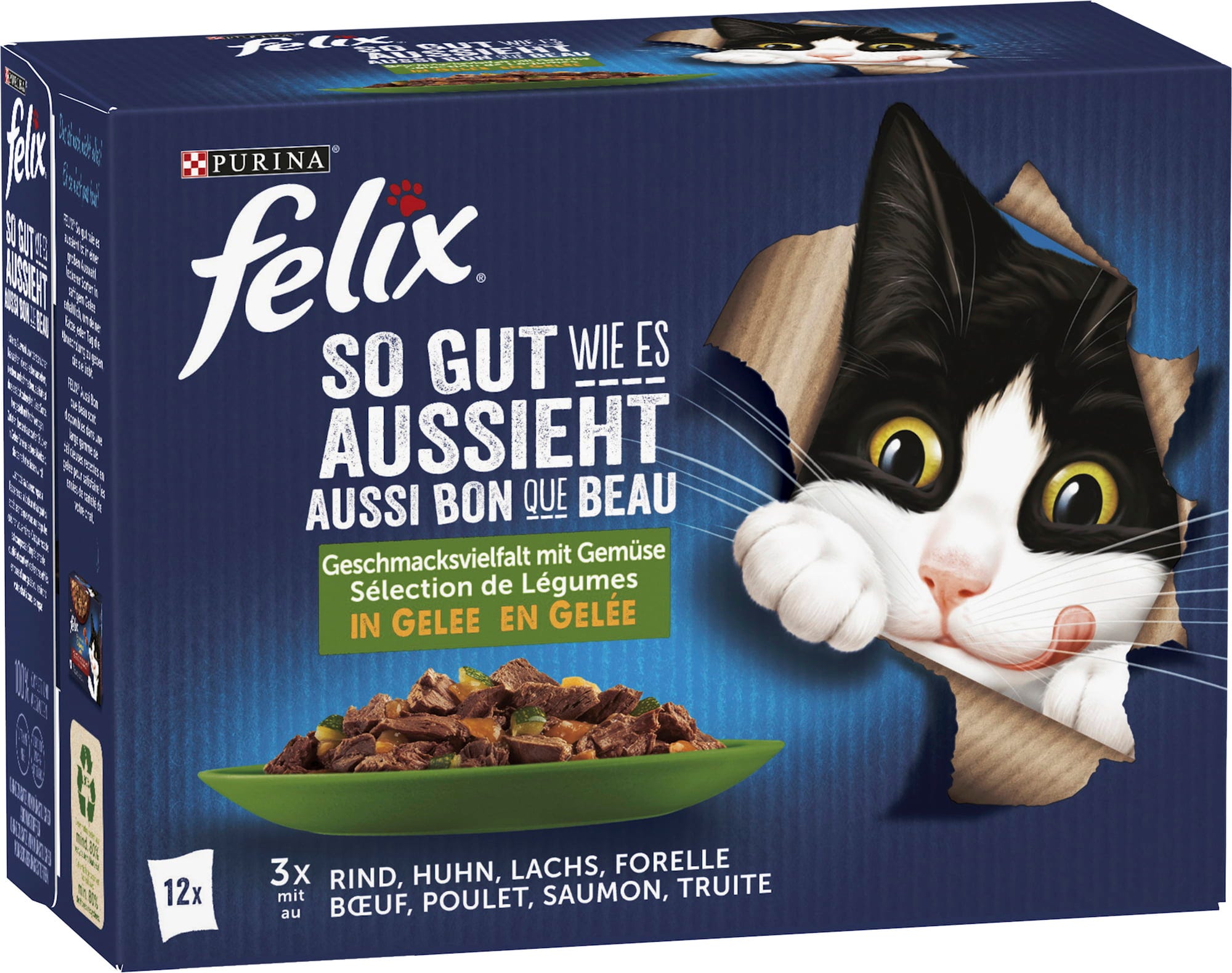 Kulinářský pozdrav pro Vaši mlsnou kočku! Výhodné balení Felix - Smíšený výběr se zeleninou přináší do misky neodolatelné chutě a vyvážené porce. A to nejlepší? Každá porce chutná přesně tak dobře, jak vypadá!