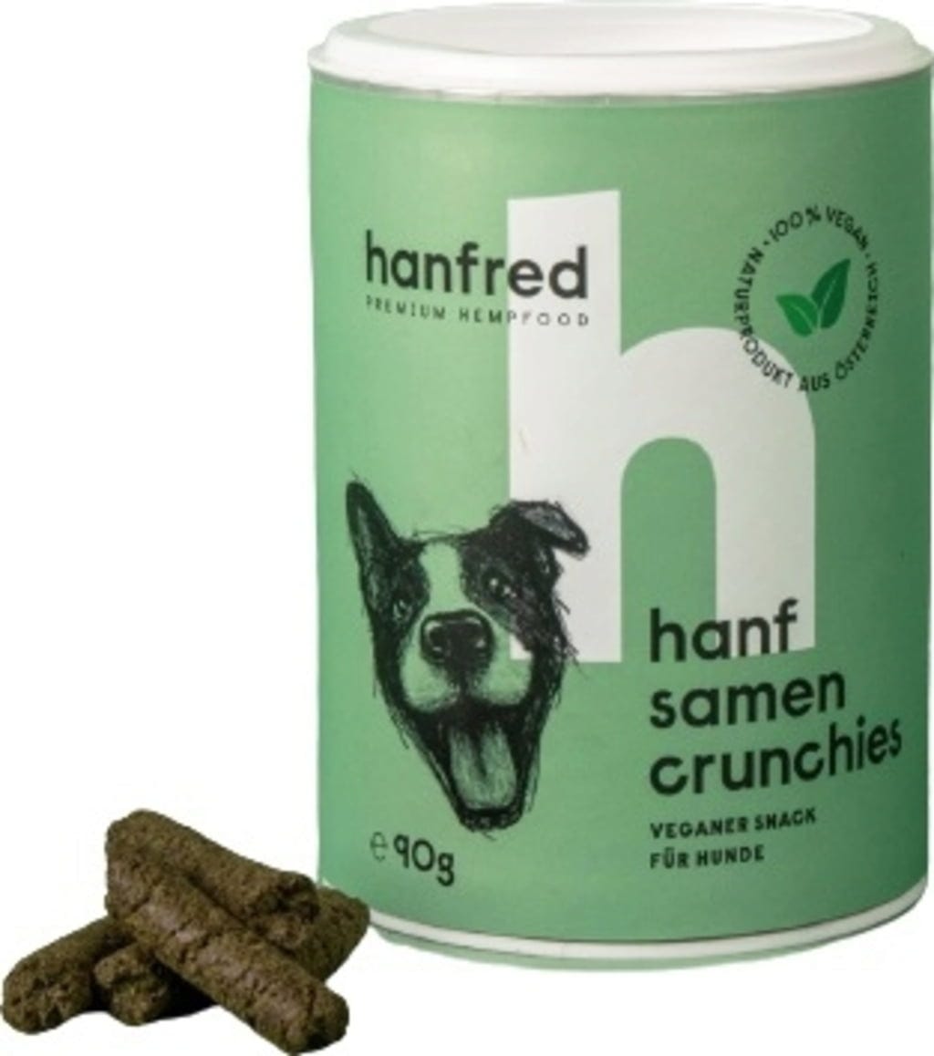Crunchies od společnosti Hanfred se skládají ze 100% konopných semínek, a jsou proto ideálními veganskými svačinkami pro malé i velké psy.