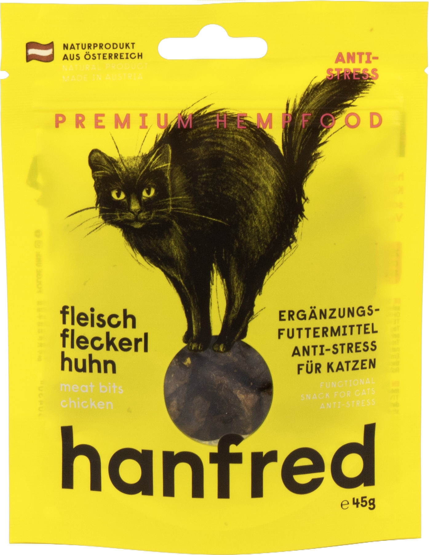 Pokud Vaše kočka citlivě reaguje na změny nebo stresové situace, může být tento pamlsek skvělou volbou. Hanfred Masové fleky pro kočky obsahuje 95 % masa a 5 % konopného prášku – bez obilovin a umělých přísad.