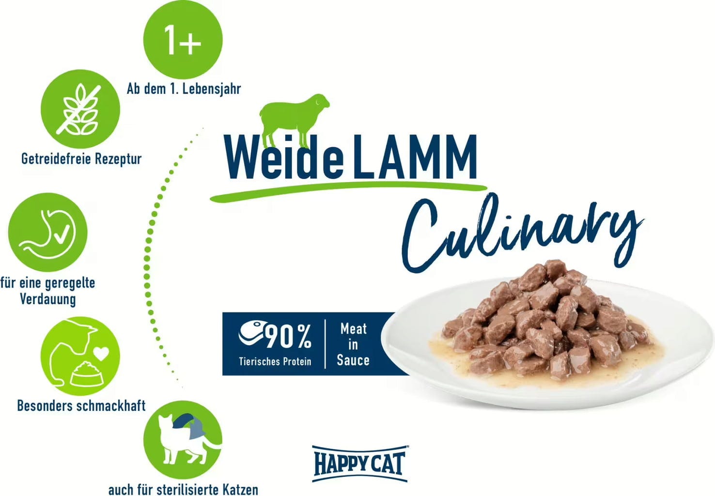 Meat in Sauce kapsičky jsou skutečnou specialitou: zatímco Vaši kočku zásobují potřebnými vitaminy a minerálními látkami z jemných masových kousků, zároveň toto krmivo díky nebesky chutné omáčce zajišťuje příjem dostatečného množství tekutin. Toto lahodné mokré krmivo je bohaté na cenné živočišné bílkoviny z chutného jehněčího z pastvy (90 %) - a to vše bez přidaných konzervačních látek.