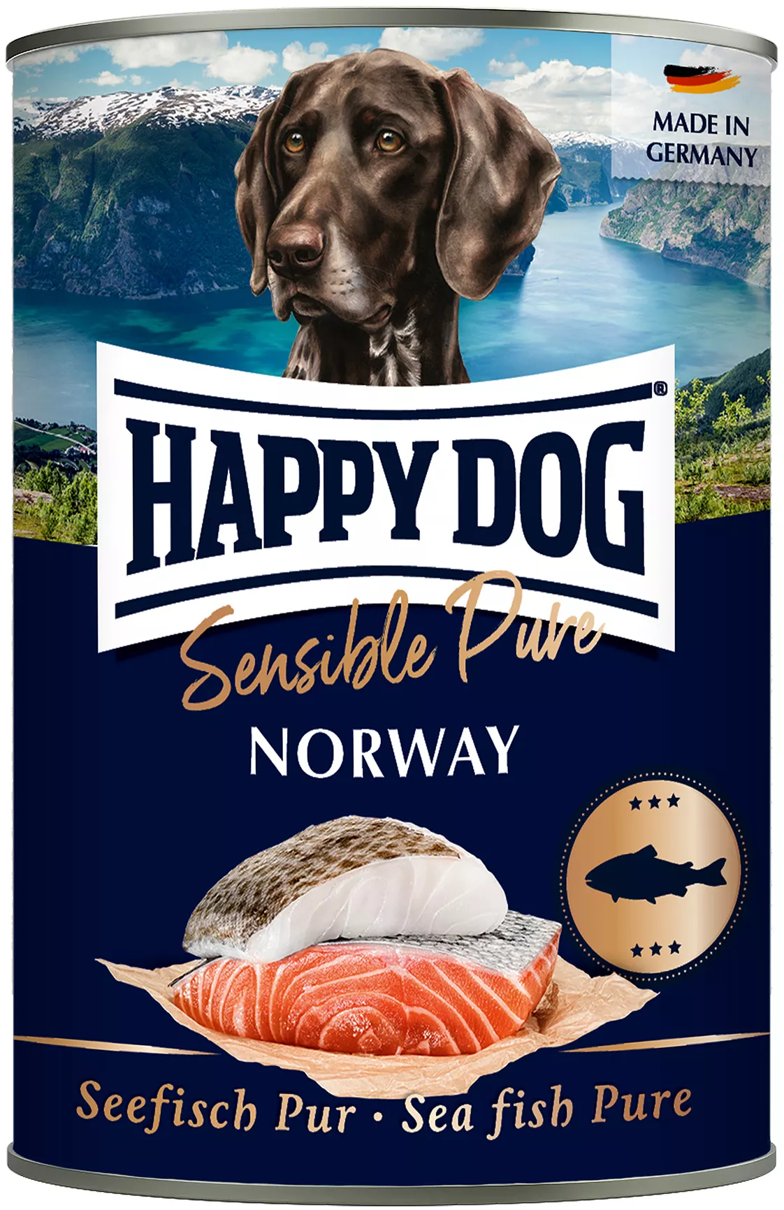 S prémiovým mokrým krmivem Happy Dog Sensible Pure Norway dostane Váš pes přírodní a vyvážené jídlo. Tato lahodná pochoutka se skládá ze 100 % z delikátní bílé ryby, jako je platýs a treska, a také z jemného lososa. Zároveň dodává důležité vitamíny a minerální látky a neobsahuje sóju ani jiné rostlinné přísady.
