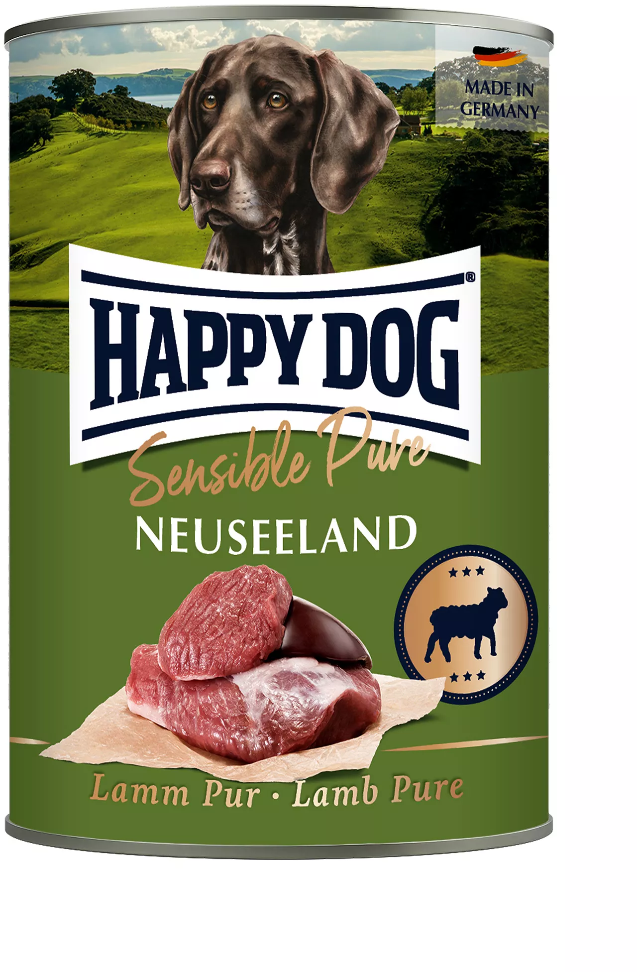 S chutným mokrým krmivem Happy Dog Sensible Pure Sens Novozélandské čisté jehněčí rozmazlíte svého psa přírodními a vyváženými surovinami. Prémiová masová receptura je ze 100 % tvořena kvalitním a snadno stravitelným jehněčím masem a vnitřnostmi, které dodávají hladovým gurmánům důležité vitamíny a minerální látky. Mokré krmivo se samozřejmě vyrábí bez sóji a lepku a neobsahuje ani žádné další rostlinné přísady.