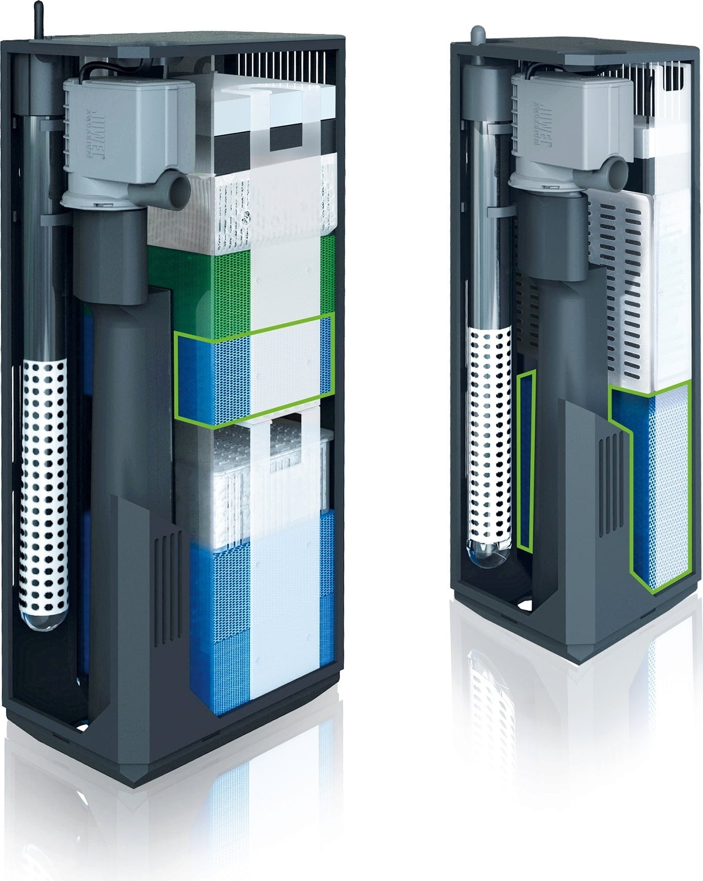 Filtry JUWEL Bioflow jsou vybaveny vysoce účinným a velmi tichým oběhovým čerpadlem Eccoflow, jehož výkon je podle vědeckých kritérií přizpůsoben velikosti filtračního systému. Filtry Bioflow jsou navíc připraveny pro použití topítek JUWEL, která jsou optimálně integrována do vodního okruhu a zajišťují rovnoměrné rozložení tepla ve všech částech Vašeho akvária. Filtrační systém Bioflow nevyužívá hadicové spojky snižující výkon, které jsou často příčinou netěsností. Systém Bioflow tak představuje bezpečný způsob filtrace vody v akváriu.