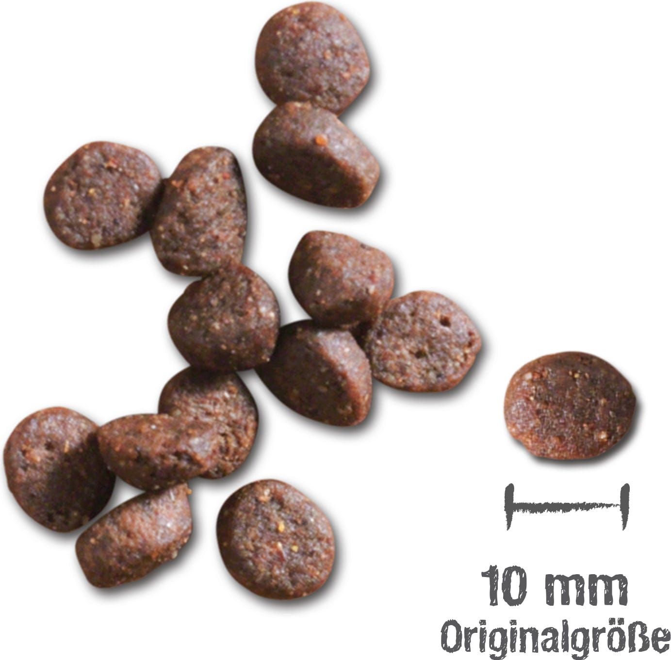 30 % jehněčí maso/játra/plíce, 14 % sušený jehněčí protein, 14 % drůbeží protein s nízkým obsahem popelovin, sušený, Rýže, kukuřice, drůbeží tuk, hydrolyzovaná drůbeží játra, sladové žito, sušená vejce, pozemní mořský zooplankton (2,5 % Krill), 2,5 % pivovarské kvasnice inaktivované a sušené, mořská rybí moučka, výlisky z hroznových jader, 1,3 % chia semínka, sušená karobová mouka, chlorid sodný, chlorid draselný, inulin z čekanky, sušené bylinky