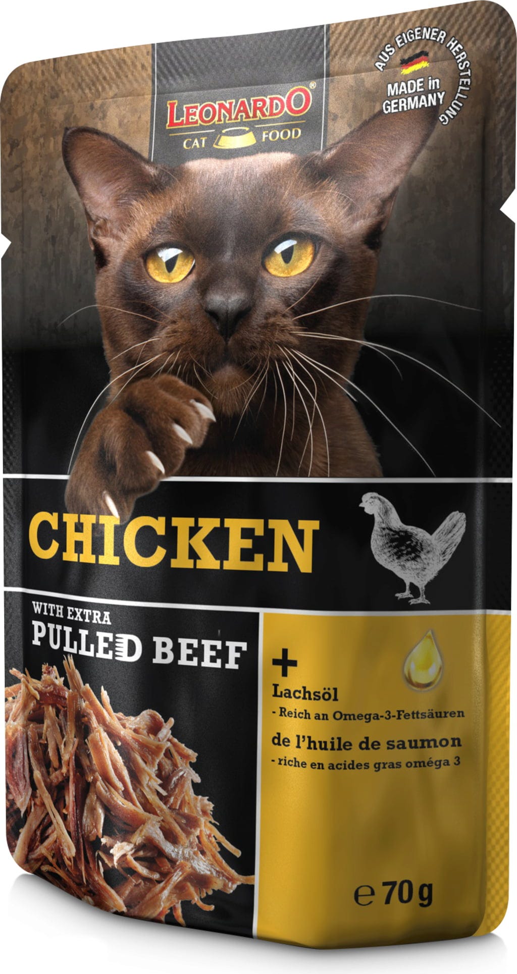 Jemná kuřecí paštika se snoubí s trhaným hovězím masem a přináší nezapomenutelné chuťové zážitky! Šetrně vařená jídla jsou obohacena o lososový olej a obsahují pouze ty nejlepší ingredience.