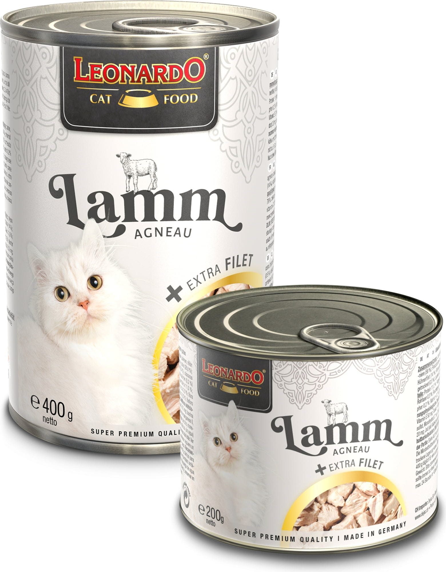 Kočičí sen v konzervě! Toto lahodné gourmet menu potěší mlsné jazýčky jemným jehněčím a extra jemnými filetovými kousky z kuřete, které byly šetrně připraveny ve vlastní šťávě. Cenný lososový olej dotváří delikátní recepturu.