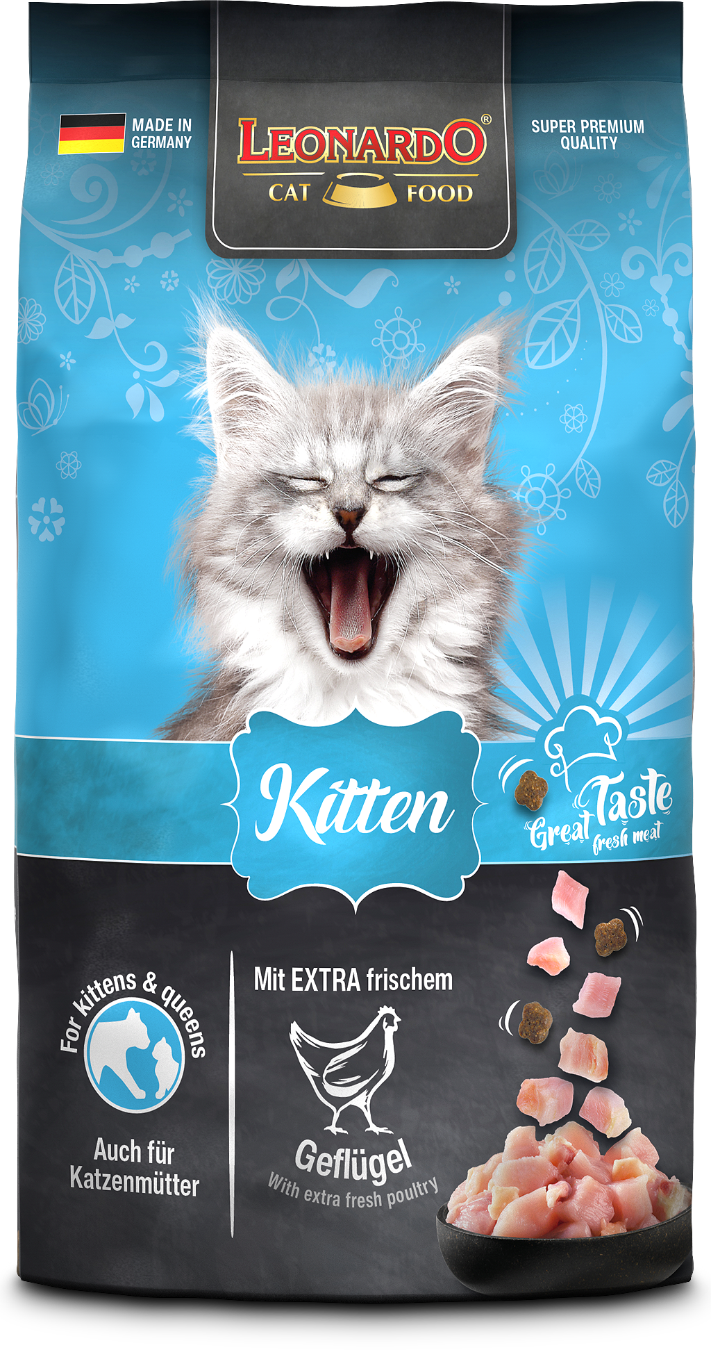 Toto suché krmivo pro koťata spojuje čerstvé drůbeží maso se superpotravinou chia a přírodními kvasnicovými extrakty. Malé a na sousto přizpůsobené granule odpovídají drobnému chrupu koťat a lze je podávat až do jednoho roku věku.