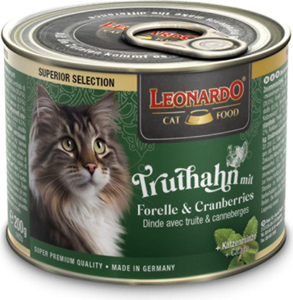 Superior Selection od Leonardo je lahodné krmivo pro kočky v konzervě, které spojuje cenné živiny z chutného krůtího masa a jemné pstruhové ryby s ovocnou superpotravinou - brusinkami. Kombinace, do které se zamilujete!