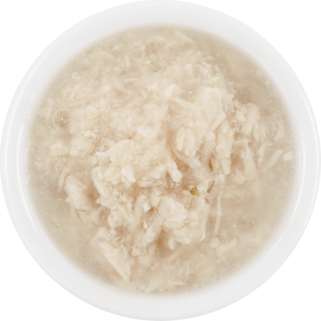60,5 % kuřecí vývar, 38 % kuřecí filé, 1,5 % Tapiokový škrob