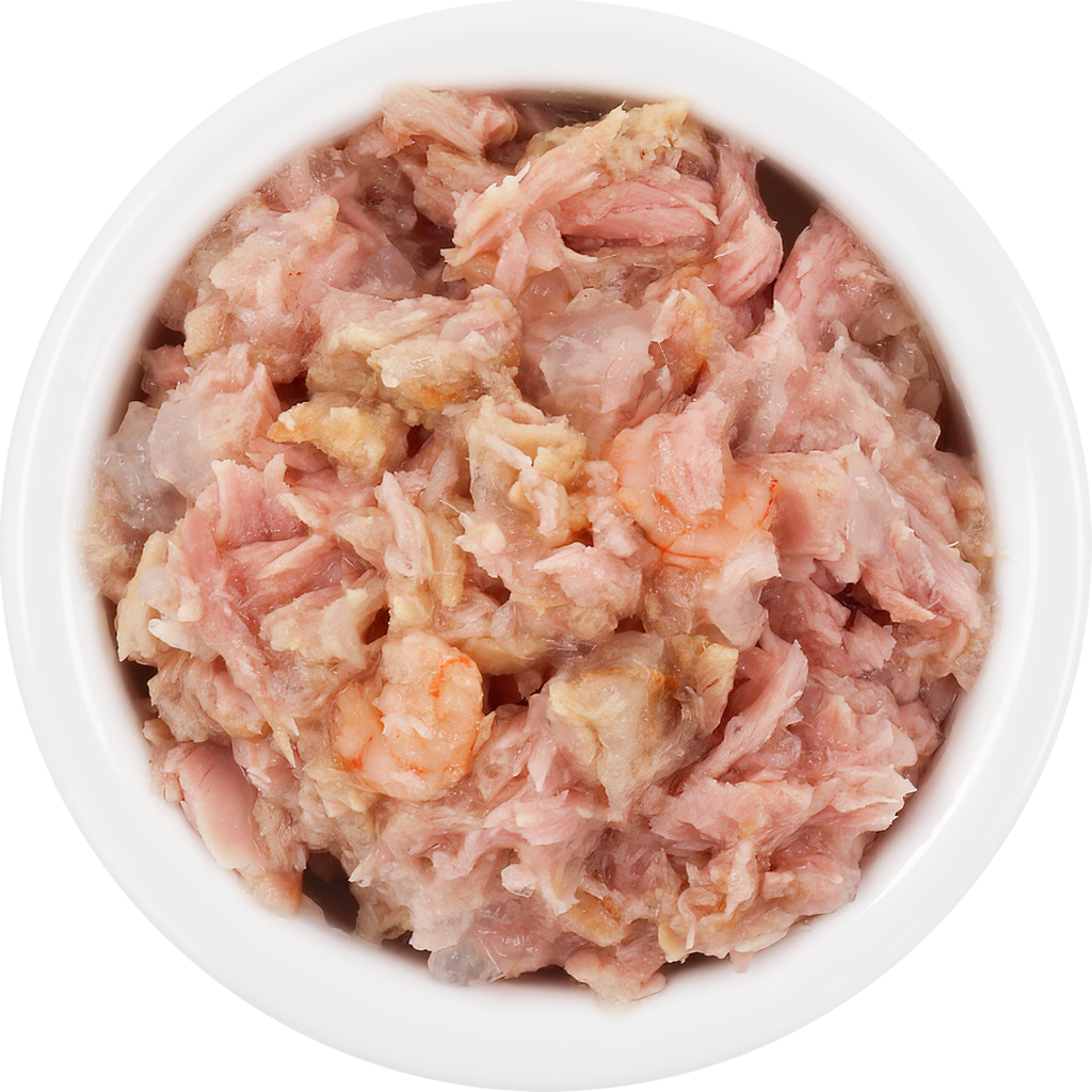 56,5 % vývar z tuňáka a krevet, 38 % filety z tuňáka, 4 % krevety, 1,5 % Tapiokový škrob