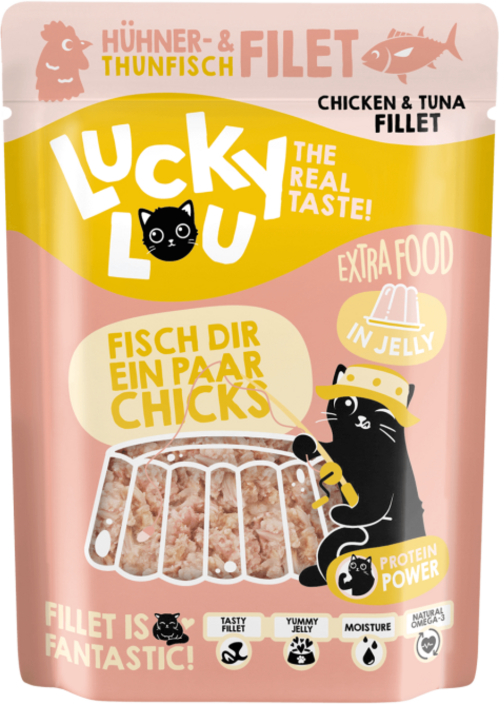 Lucky Lou Extra Food Pouch s tuňákem a kuřetem v želé, 70 g