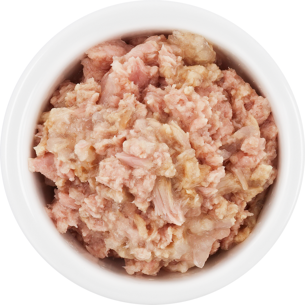 56,5 % vývar (tuňák, kuře), 38 % filety z tuňáka, 4 % kuřecí filé, 1,5 % Tapiokový škrob