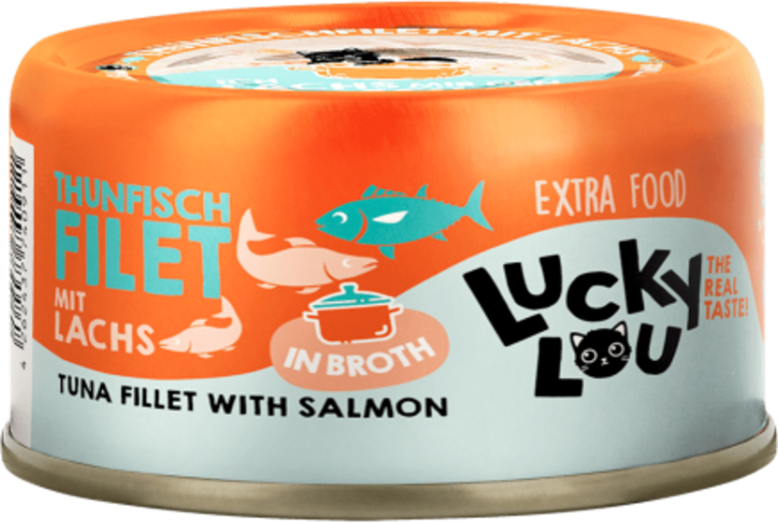 Lucky Lou Extra Food tuňák a losos ve vývaru, 70 g