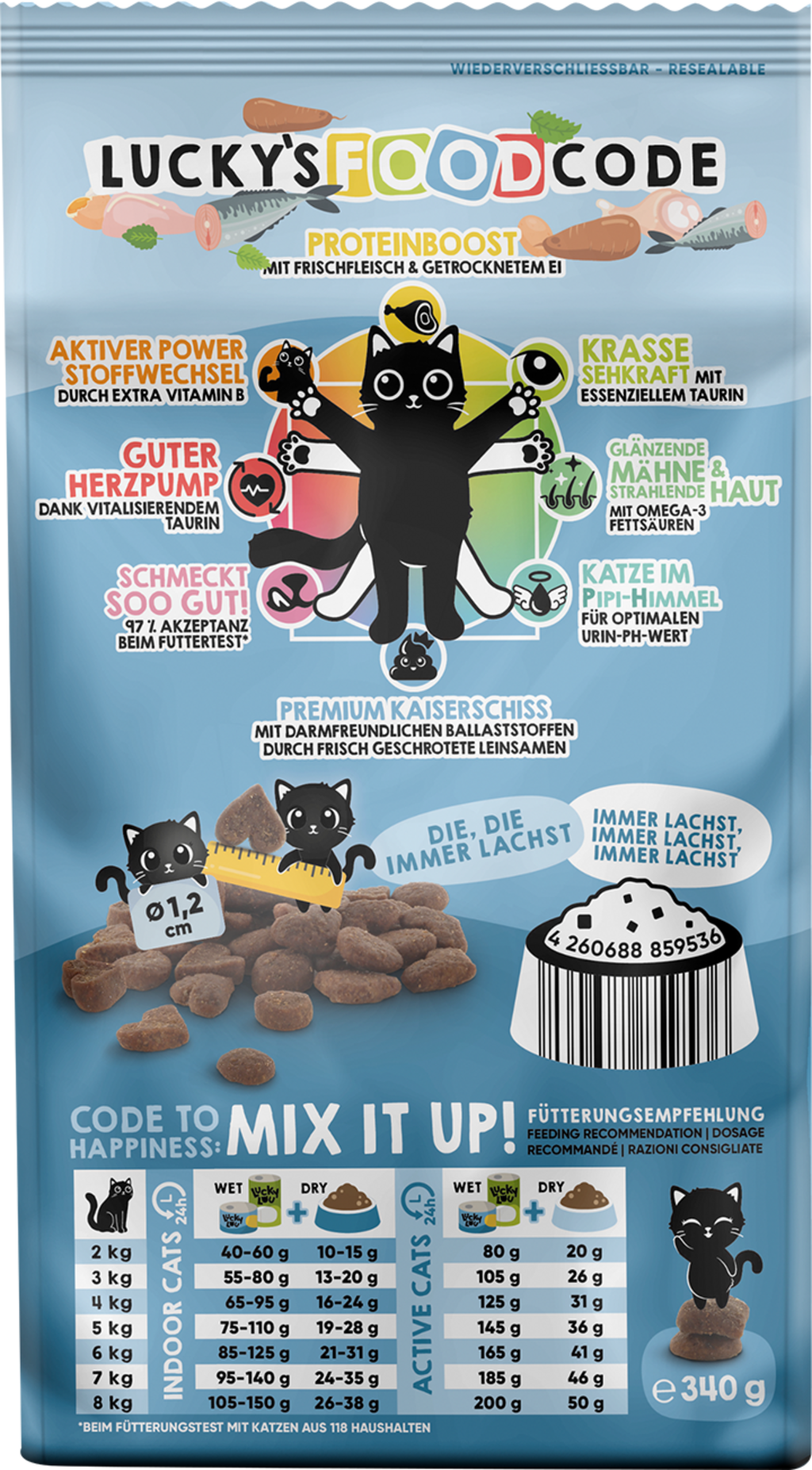 Lucky Lou Food Code představuje špičkové granule, které nejen neodolatelně křupou a skvěle chutnají, ale také Vaší kočce poskytují hodnotné živiny odpovídající jejímu věku. Inspirovaná dokonalými proporcemi Vitruviánského muže od Leonarda da Vinciho, nabízí vyvážená receptura těchto granulí u každé varianty 8 benefitů, které budou Vaši kočku hýčkat holisticky od hlavy až k patě.