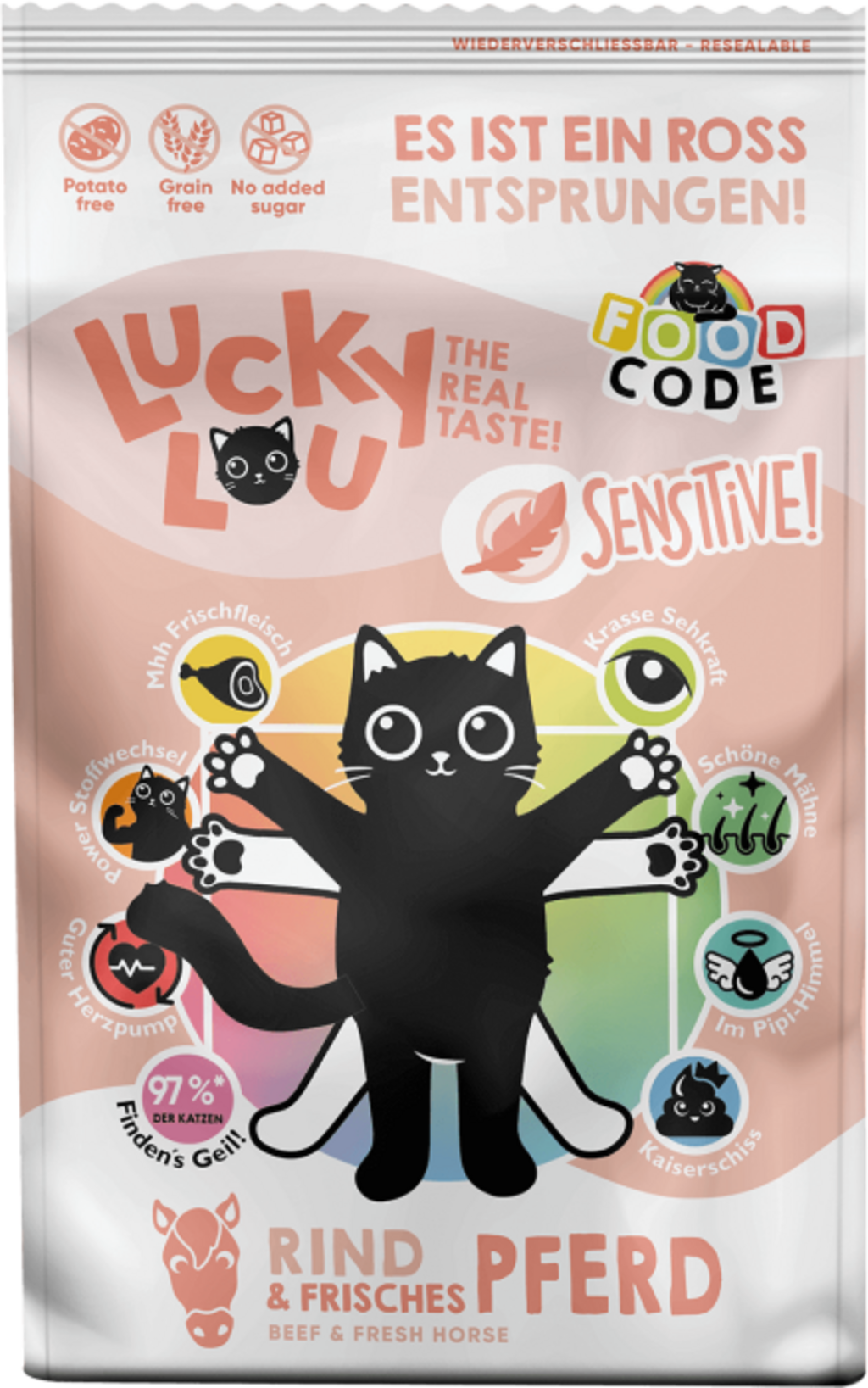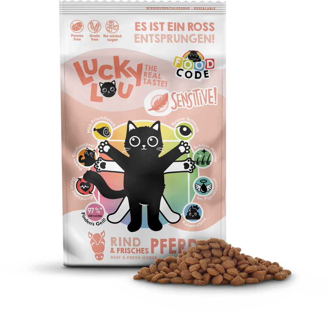 Lucky Lou Food Code Sensitive s hovězím a koním masem, 750 g