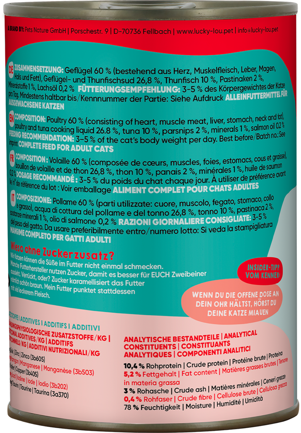 Pozor, milovníci koček! Toto mokré krmivo poskytuje Vaší kočce vše, co den co den potřebuje, zcela podle vzoru přírody. Představuje tak nejen vysoce kvalitní nutriční základ pro vitální život kočky, ale navíc i báječně chutná. Kvůli němu nechá Vaše kočka každou myš bez povšimnutí.